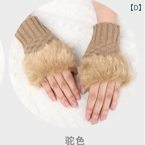 手袋 レディース 女性用 秋冬 フェイクファー ニット 指なし 指先出し 手首ウォーマー 保温 防寒 暖かい スマホ対応 作業用 韓国風
