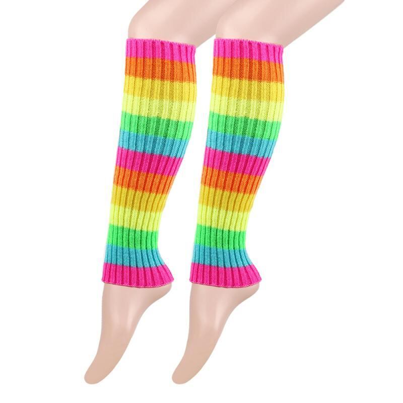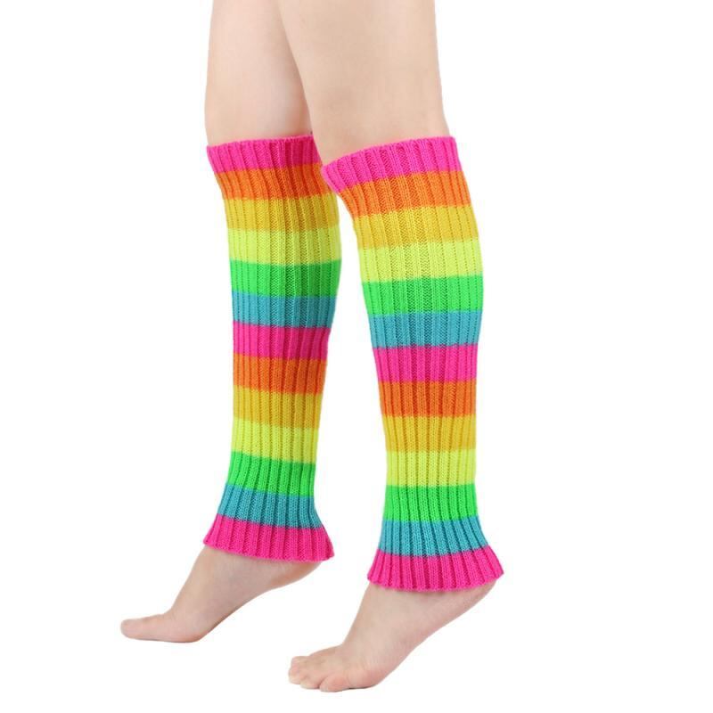 レッグウォーマー ユニセックス 男女兼用 カラフル 蛍光色 ネオンカラー ストライプ柄 ニット アクリル ロング丈 保温 防寒 あったか パーティー ダンス イベント 衣装 ストリート カジュアル 秋冬
