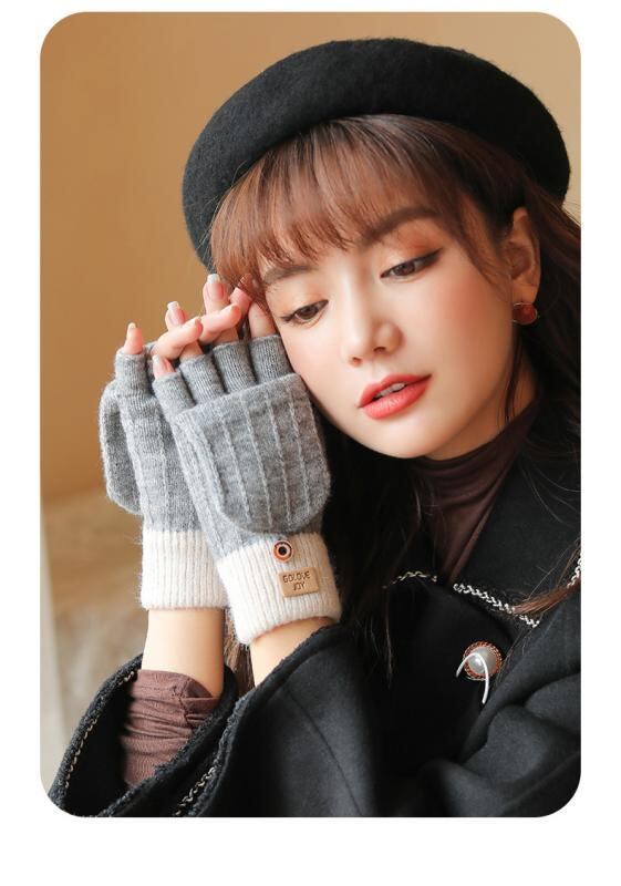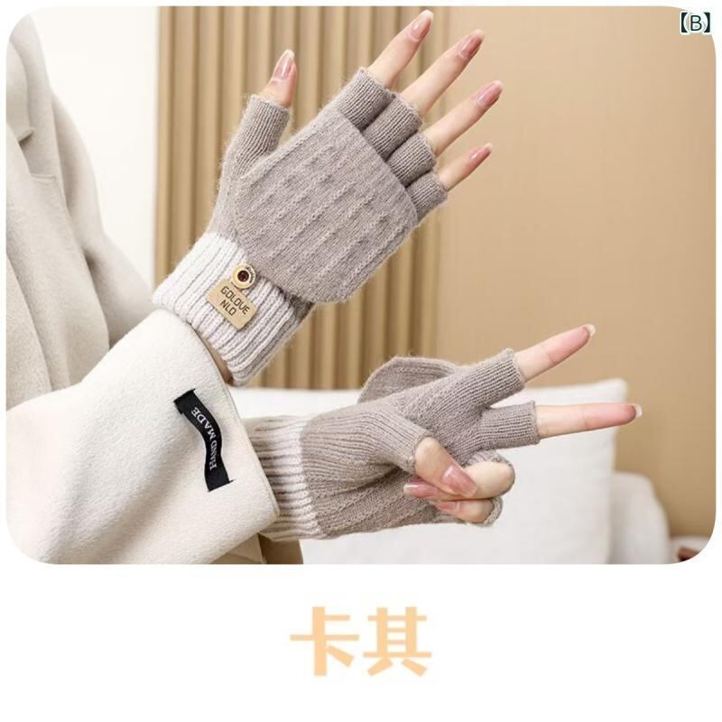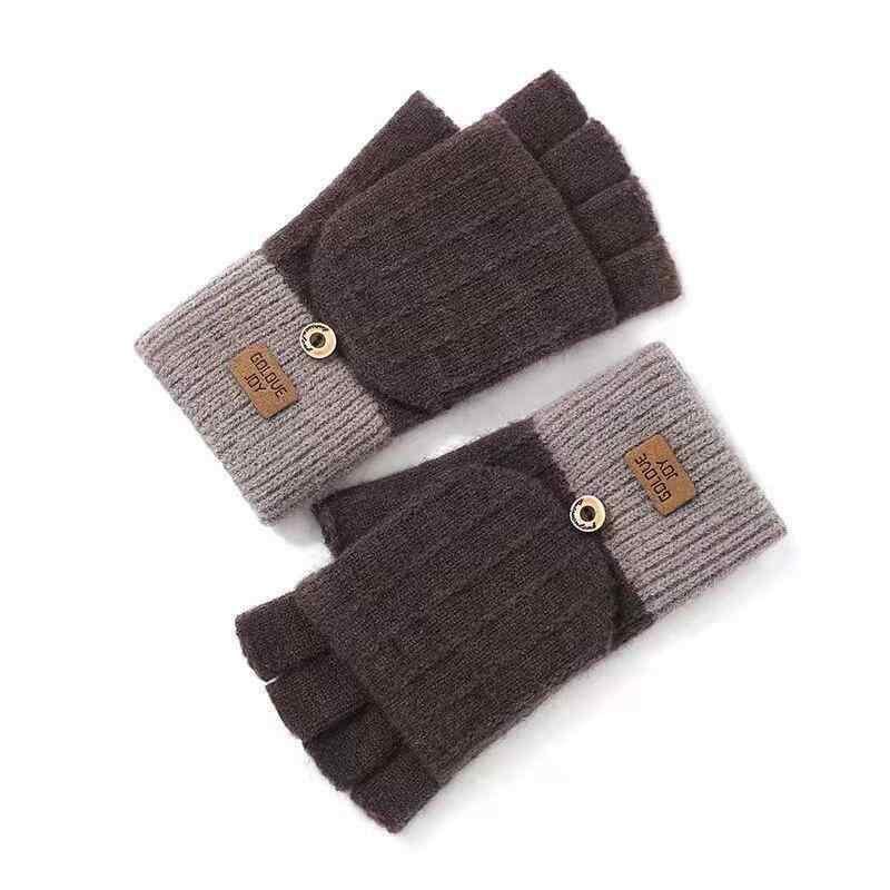 手袋 男女兼用 秋冬 アルパカ混 厚手 ニット 指なし フラップミトン 保温 防風 あったか 通学 通勤 学生向け カップル お揃い