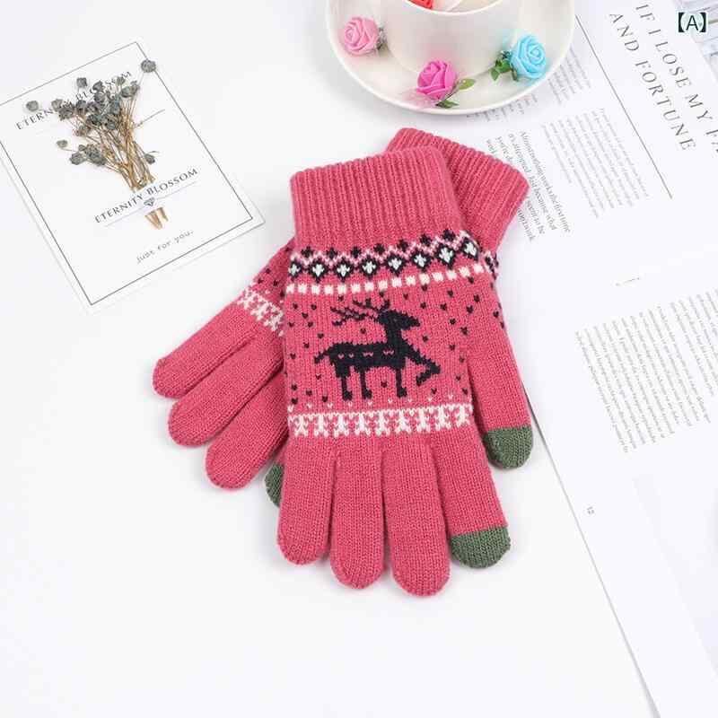 手袋 レディース カップル ペア ニット ポリエステル グローブ 秋冬 防寒 暖か スマホ対応 タッチパネル対応 韓国ファッション トナカイ柄 クリスマスプリント