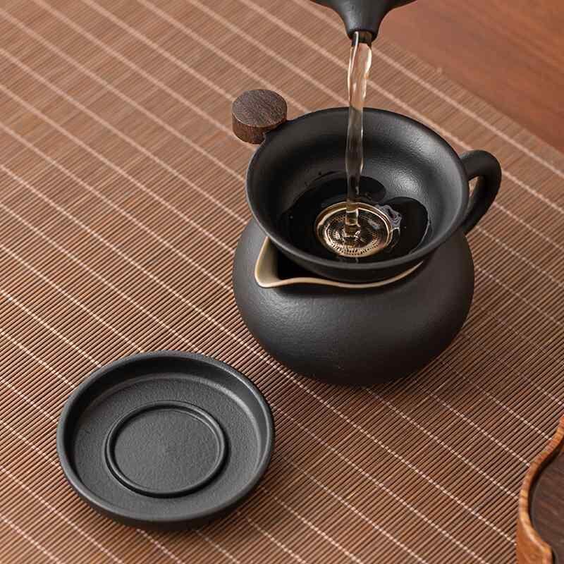 茶こしセット 黒陶 陶器 陶磁器 茶葉フィルター 濾過器 家庭用 来客用 普段使い シンプル モダン 上質 高級感 洗練 おしゃれ レトロ アジアン風