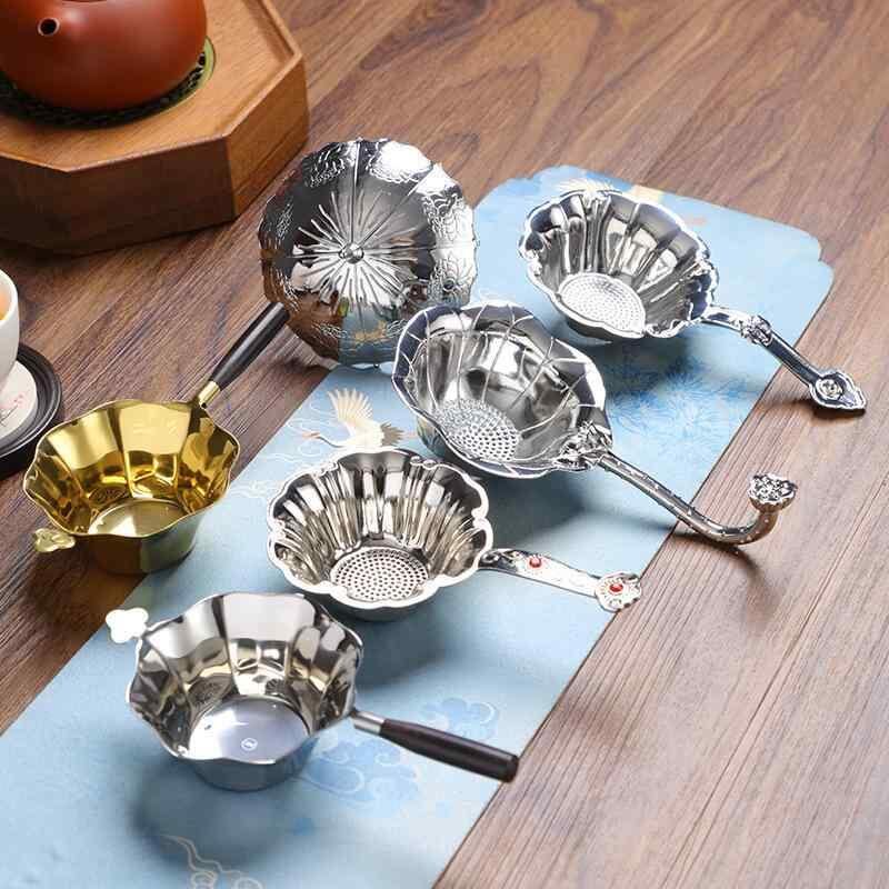 茶こし 合金製 如意形 モダン 中国風 茶葉フィルター 茶道具 茶器アクセサリー シルバー ゴールド おしゃれ 自宅用 お茶用品 プレゼント