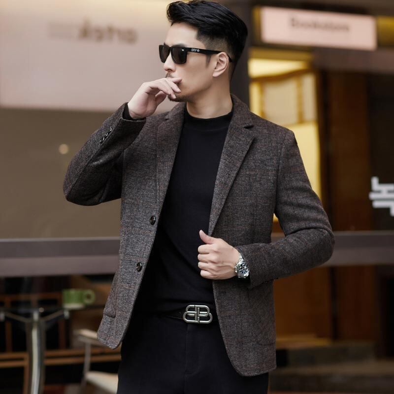 ジャケット メンズ 紳士 ダブルフェイス ウールメルトン スリムフィット カジュアル ビジネス 韓国風 防風 イージーケア 秋冬 カーキ