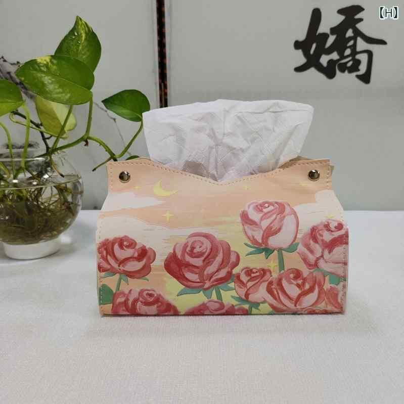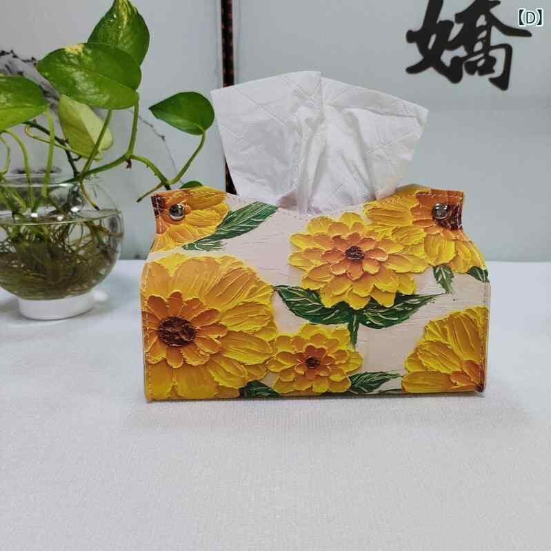 ティッシュケース ライトラグジュアリー 油絵調 アートデザイン 高級感 レザー PVC 防水 多機能 リビング ダイニング 車載 洗面所 収納ボックス