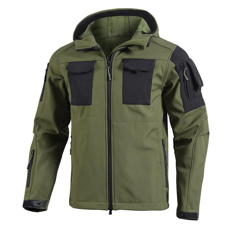 ソフトシェルジャケット ユニセックス 防水 防風 保温 フード付き 登山 キャンプ アウトドア スキー サイクリング スポーツ 秋冬 カモフラージュ柄 ポリエステル素材