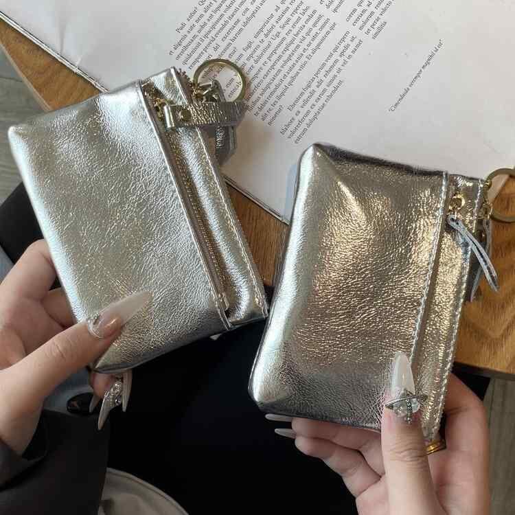 小銭入れ レディース シルバー 本革 牛革 レザー クラック柄 ファスナー 大容量 キーリング付き カード入れ コインケース ミニ財布 コンパクト 多機能 普段使い カジュアル ステッチ
