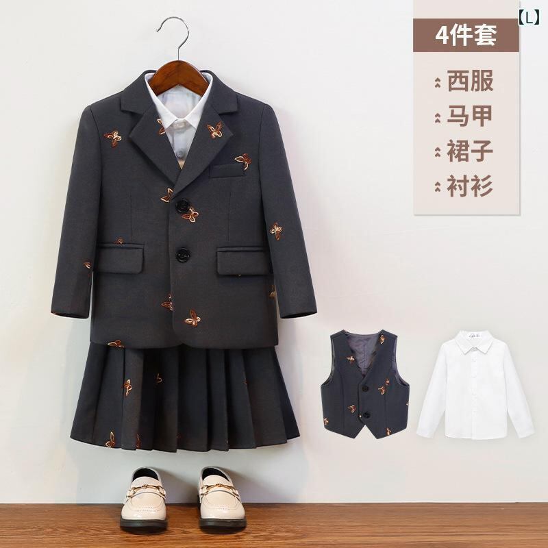 セットアップ キッズ 男の子 女の子 スーツ 学院風 スクールスタイル 秋冬 発表会 フォーマル 礼服 セレモニー 結婚式 入学式 卒業式 上下セット ジャケット ベスト パンツ スカート 長袖 ポリエステル混紡 ユニセックス