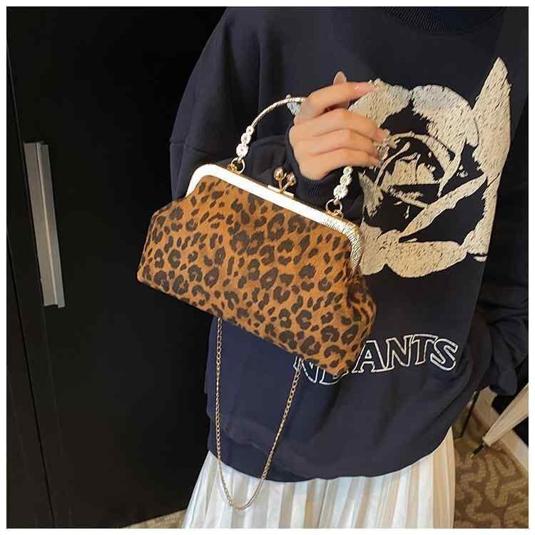 バッグ レディース がま口 シェル型 ショルダーバッグ 斜め掛け レトロ 高級感 大容量 PUレザー ワイドストラップ ヒョウ柄 普段使い ミニ 春夏 黒 ブラウン カーキ
