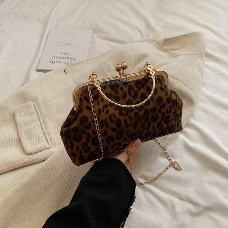 バッグ レディース 秋冬 高級感 がま口 ヒョウ柄 レトロ ショルダー 斜め掛け パーティー フォーマル PUレザー 横型 お呼ばれ 二次会 通勤 普段使い 鞄 ブラック カーキ ブラウン