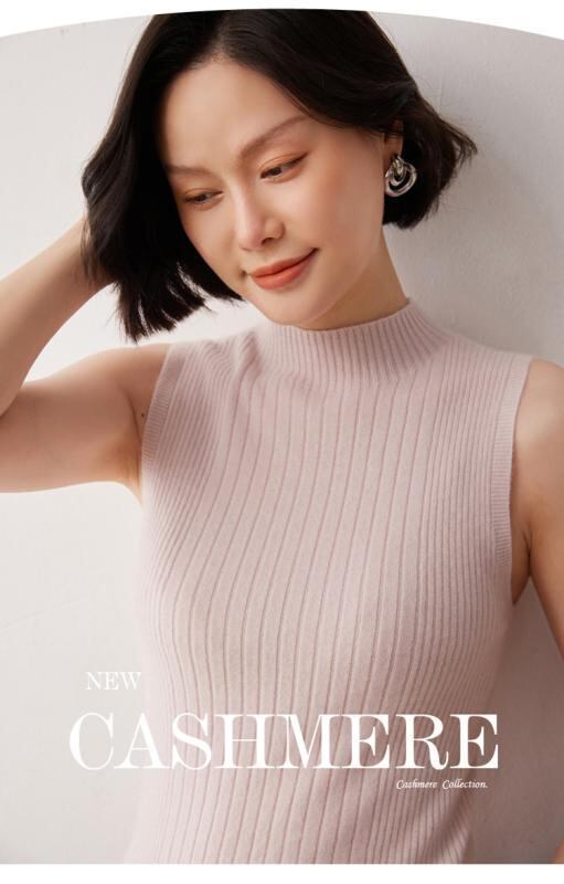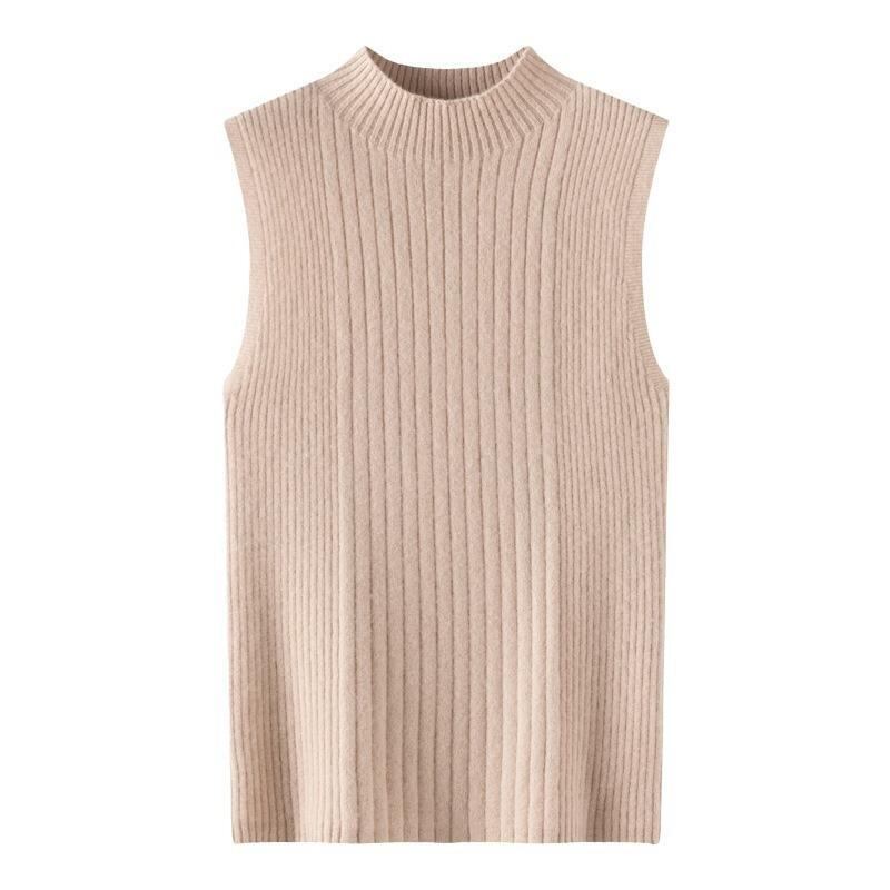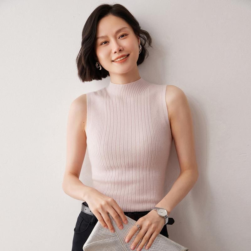 セーター レディース 秋冬 カシミヤ ノースリーブ ハイネック リブ 薄手 スリム インナー カジュアル 上品 エレガント 普段使い オフィス ブラック ベージュ ピンク