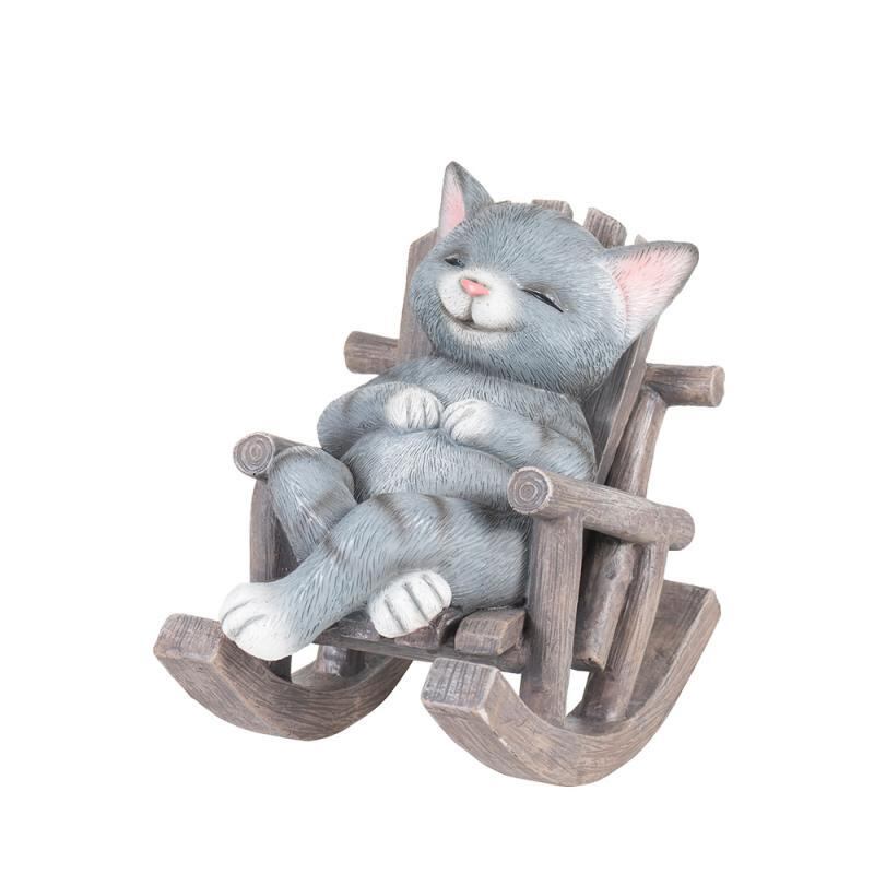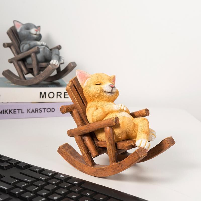 置物 アニマル ロッキングチェア 猫 犬 インテリア デスク 卓上 オフィス 家庭用 かわいい 癒し リラックス ストレス解消 ギフト オブジェ 合成樹脂 グレー 黄色 ブラウン