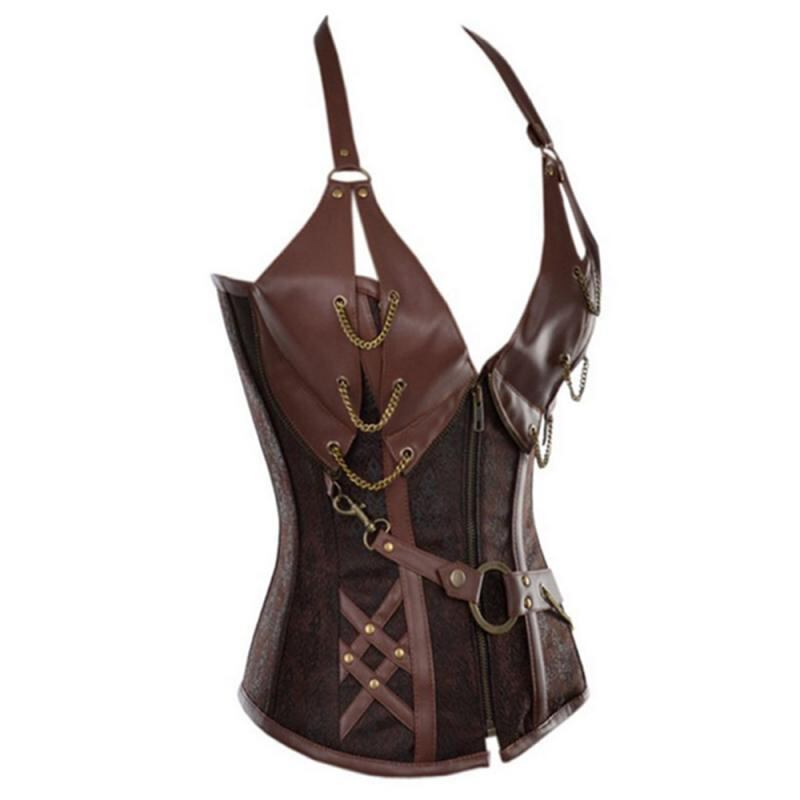 コルセット 宮廷風 ゴシック パンクテイスト ホルターネック ボーン入り ベルト付き ビスチェ ウエストシェイプ 補正下着 ボディシェイパー 綿混 薄手 ブラック ブラウン スタイルアップ 美姿勢