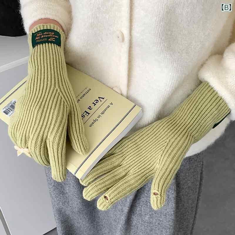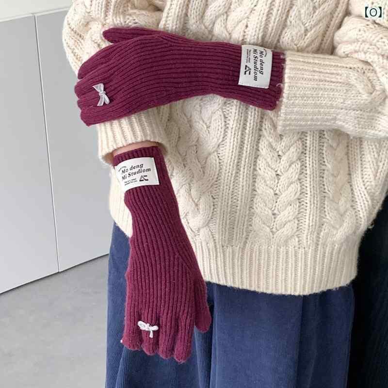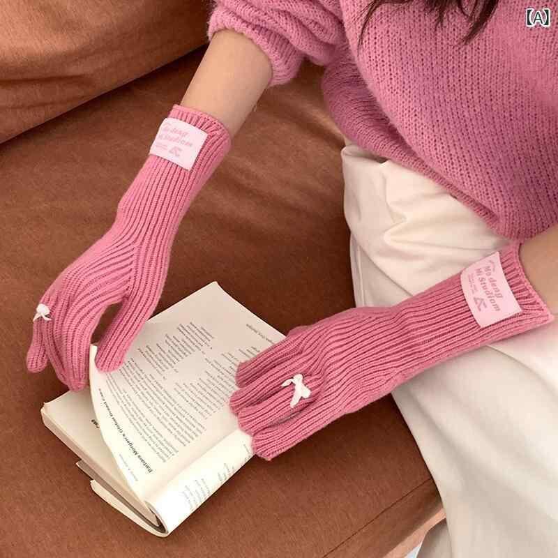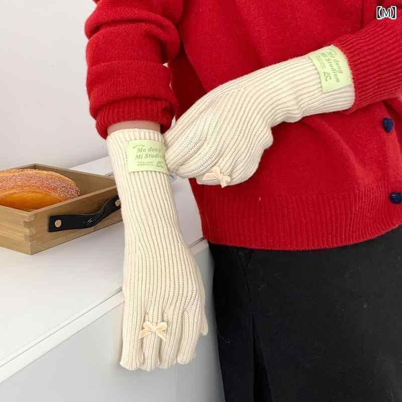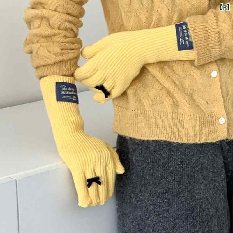 手袋 レディース ニット 指あり リボン かわいい 防寒 保温 タッチスクリーン対応 ポリエステル素材 自転車 サイクリング 日韓スタイル カジュアル 秋冬