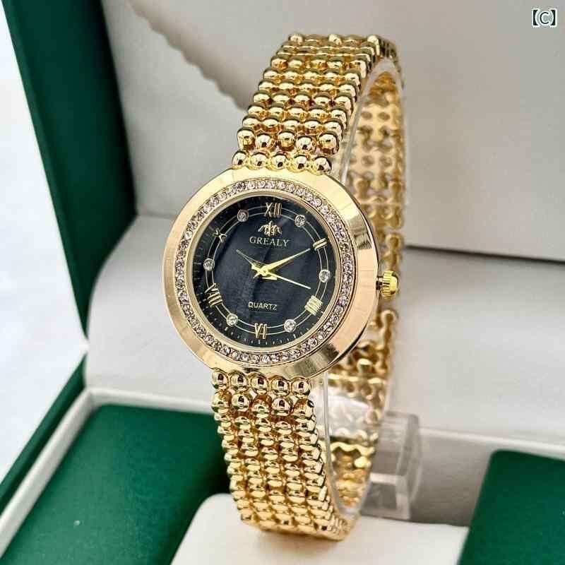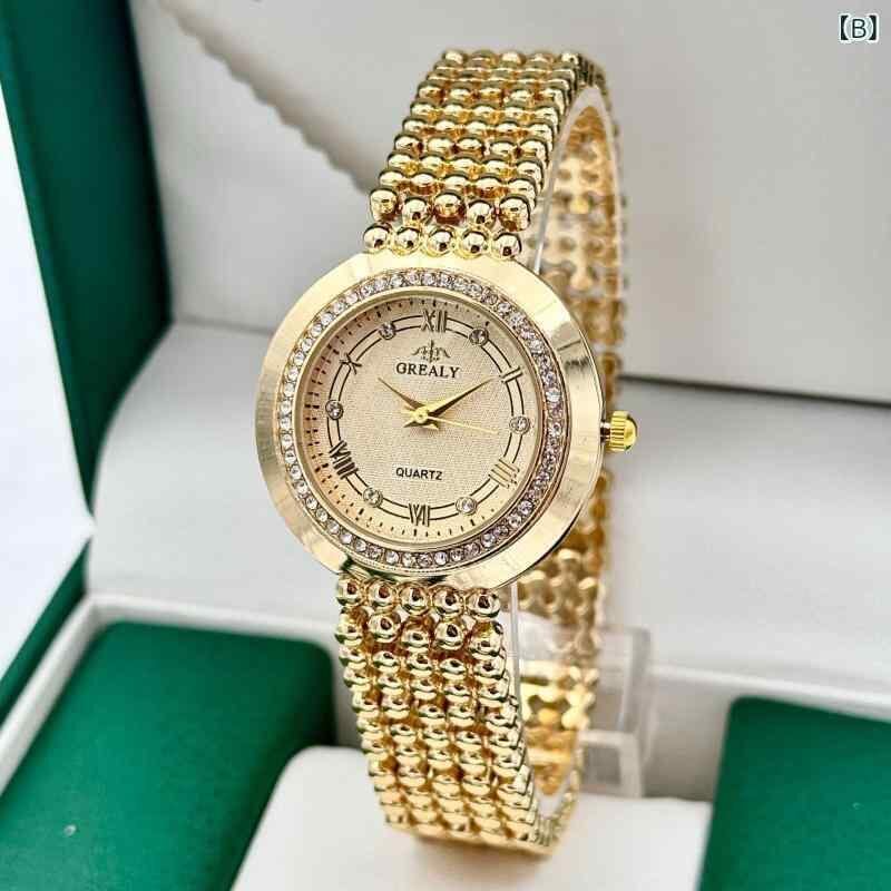 腕時計 レディース ラインストーン ファッション 合金製 アナログ表示 クォーツウォッチ 強化ガラス ジュエリーバックル 高級感 デイリーユース ラウンド文字盤 カレンダー ゴールド シルバー