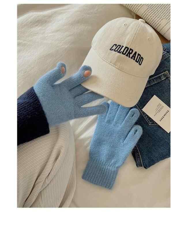 グローブ レディース ラビットファー 指なし 裏起毛 保温 防寒 防風 スマホ対応 オープンフィンガー サイクリング 普段使い 冬 暖かい ライトブルー