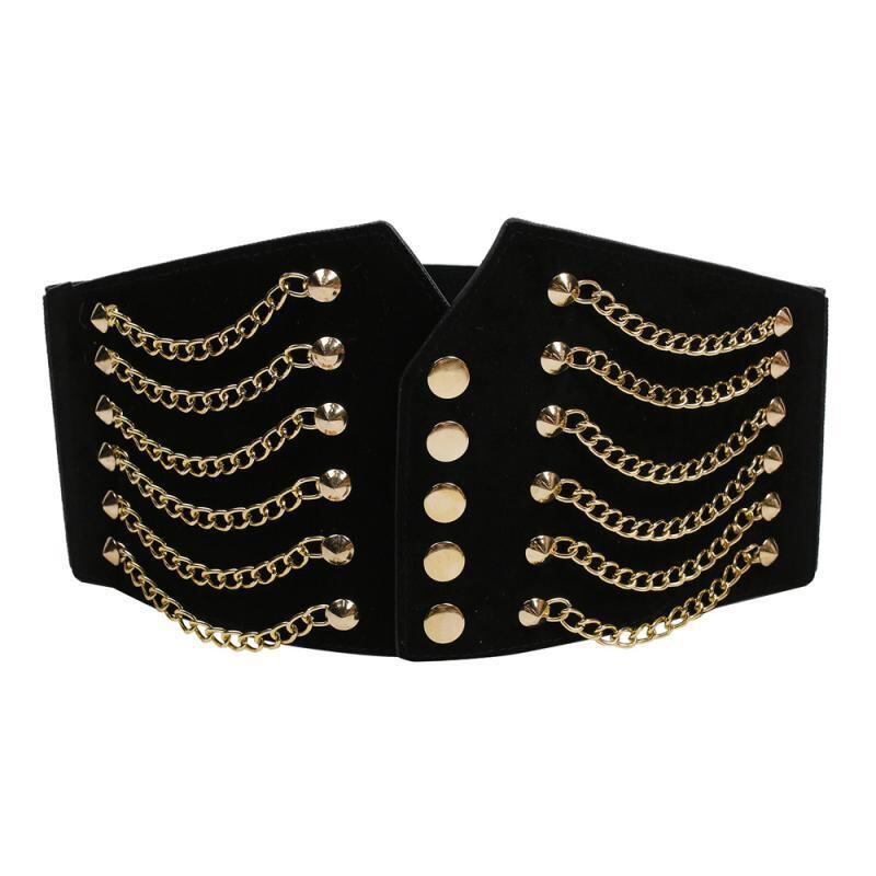 ベルト レディース ワイド チェーン ウエストマーク コルセットベルト ゴム 伸縮性 ファッション小物 黒 ファブリック 切り替え おしゃれ 万能 ワンピース スカート デイリーユース
