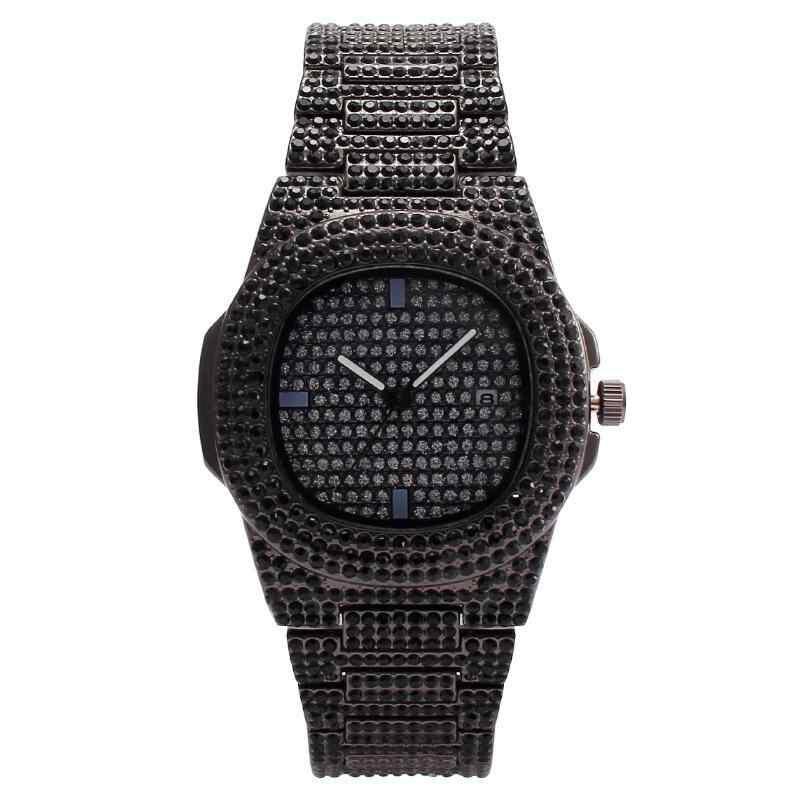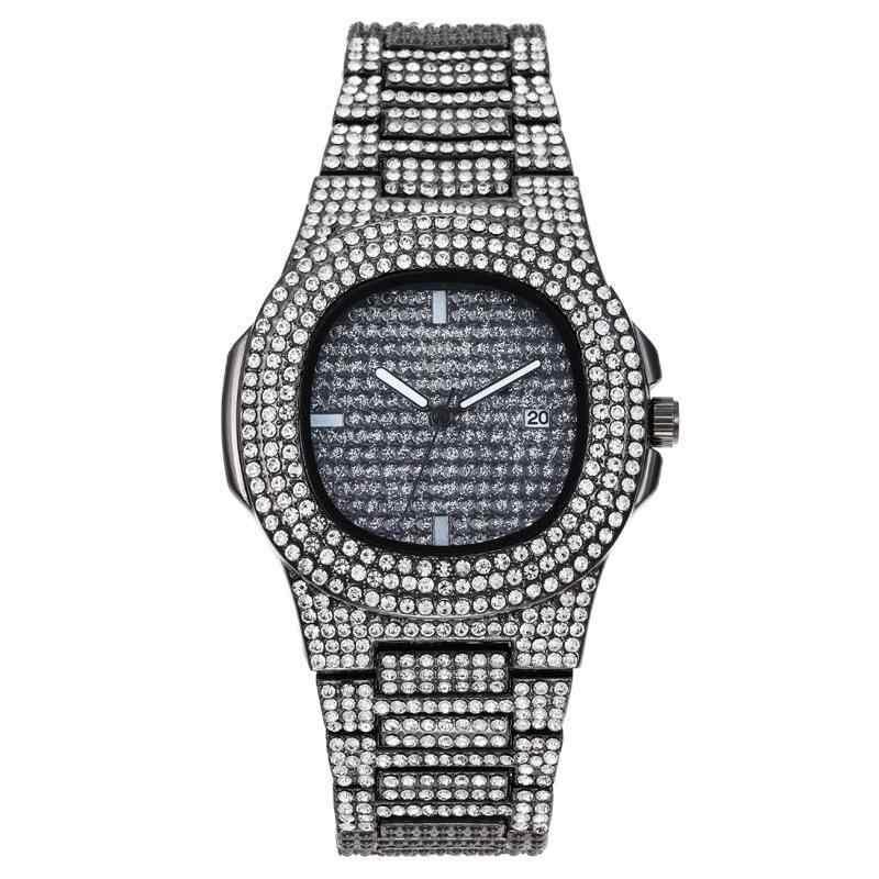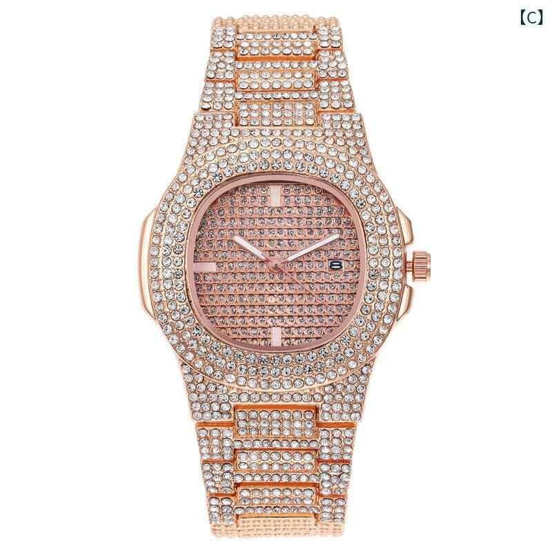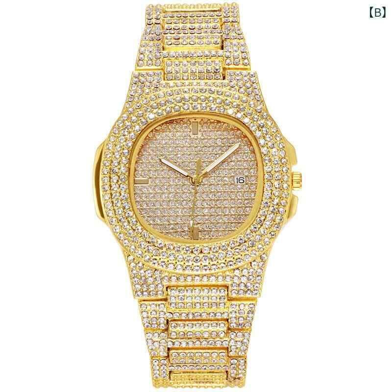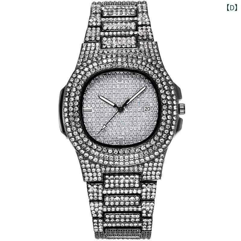 腕時計 メンズ 男性用 ヒップホップ スクエア フルジルコニア 満天星ジルコニアル クォーツ 日付表示 カレンダー機能 合金ベルト シルバー ゴールド ウォッチ 普段使い ビジネス 高級感