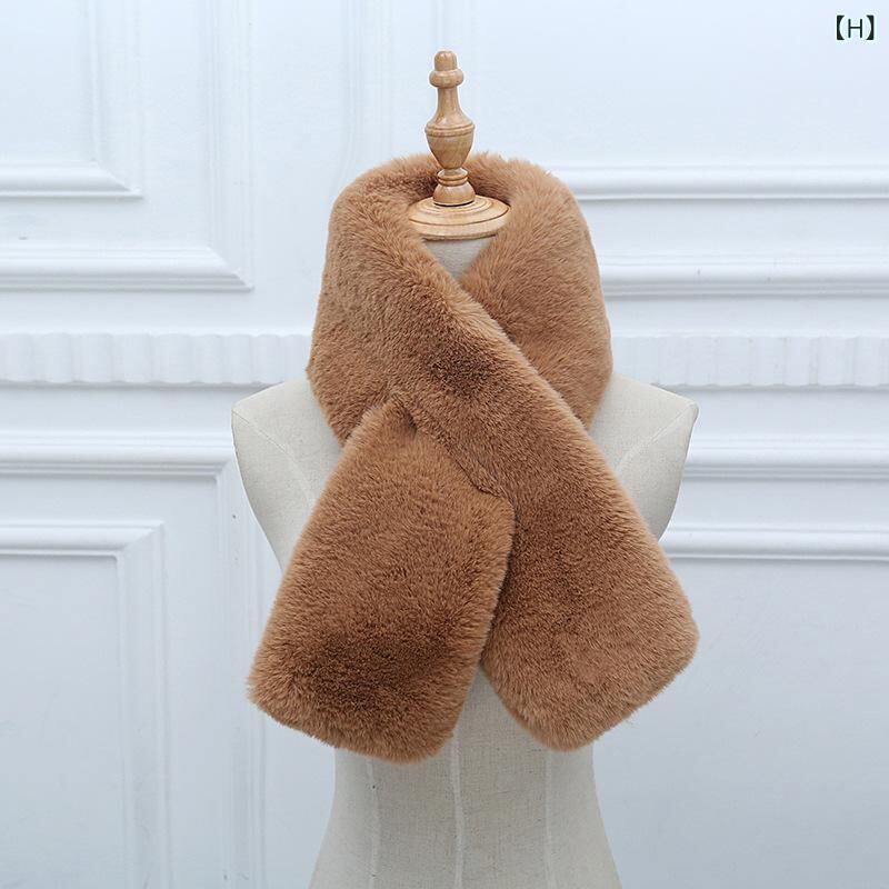マフラー ネックウォーマー ティペット レディース 女性用 秋冬 フェイクファー ラビット調 フォックス調 クロス 厚手 暖か 防寒
