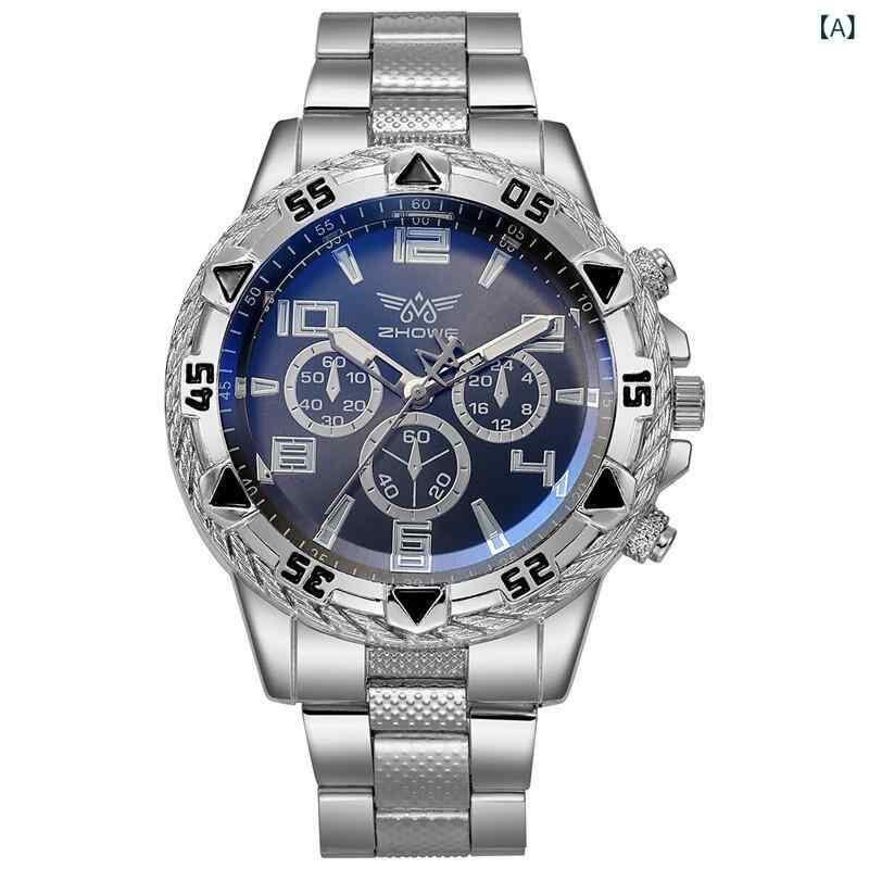 腕時計 メンズ ウォッチ ステンレスバンド メタルバンド 合金 クォーツ アラビア数字 多眼デザイン ラウンド ブルーガラス カジュアル ビジネス 通勤 シルバー ゴールド ブラック