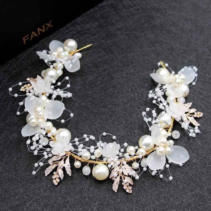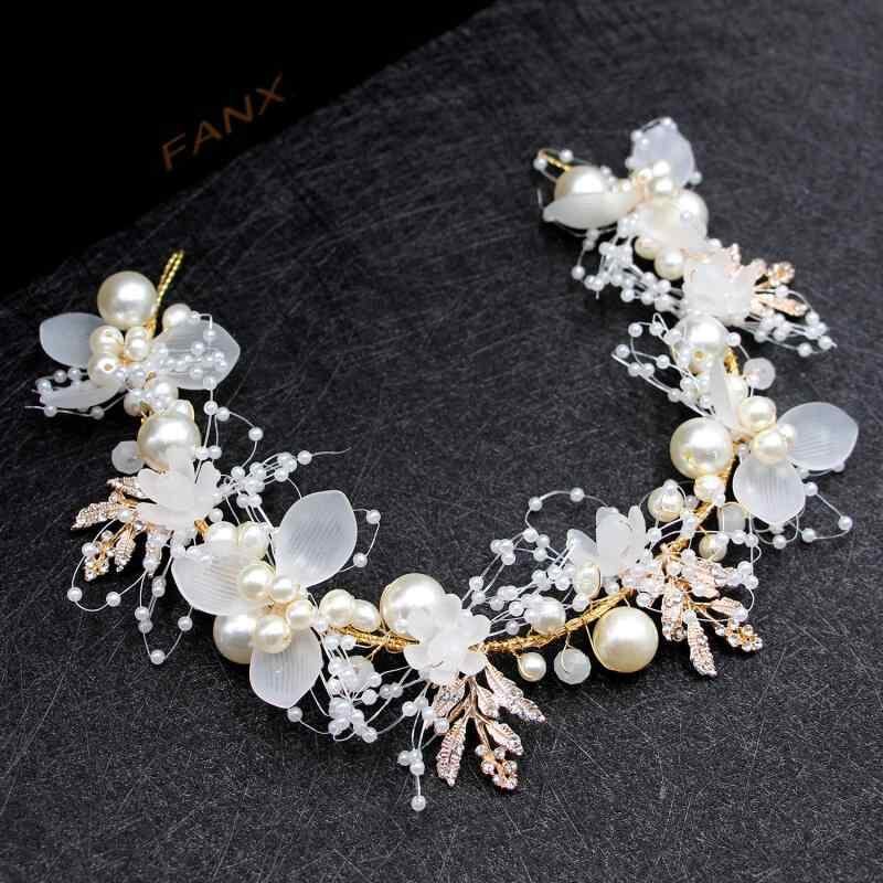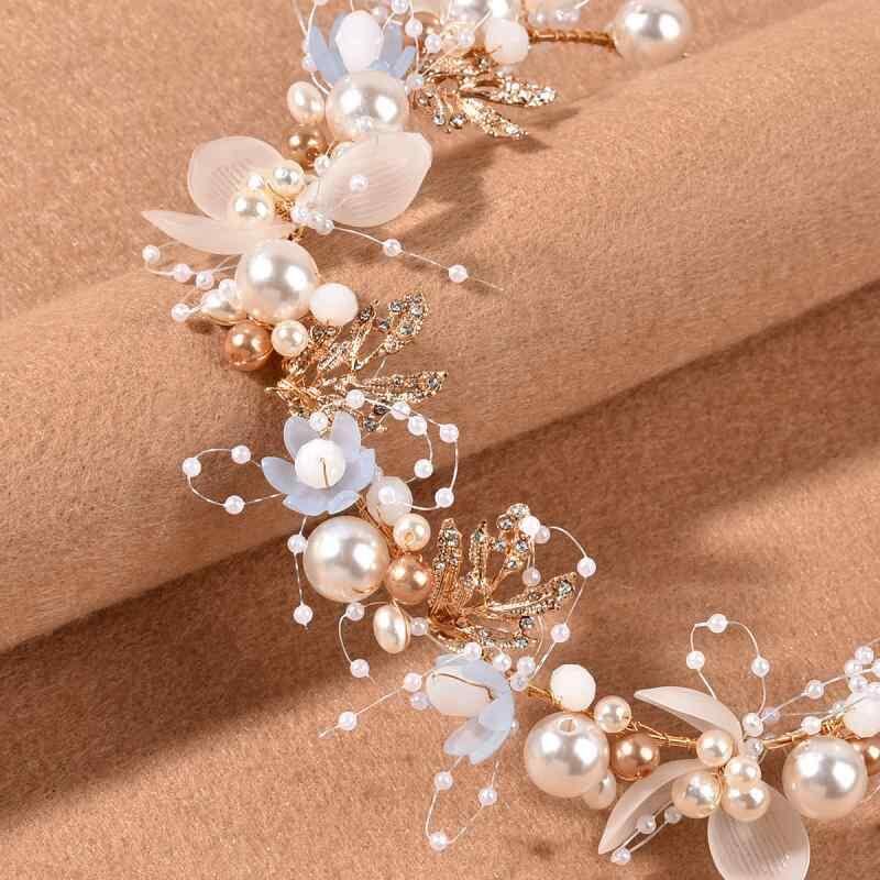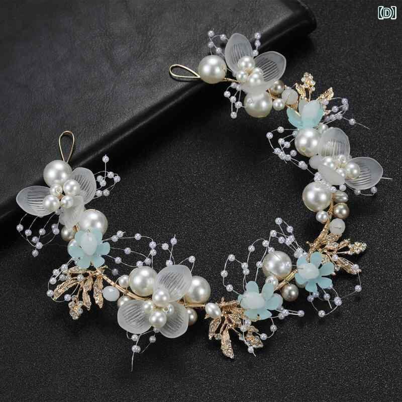 ヘアアクセサリー レディース 子供用 ブライダル 花嫁 パール フラワー 花 手編み ゴールド リーフ ヘアバンド 髪飾り 結婚式 イベント ヘッドドレス