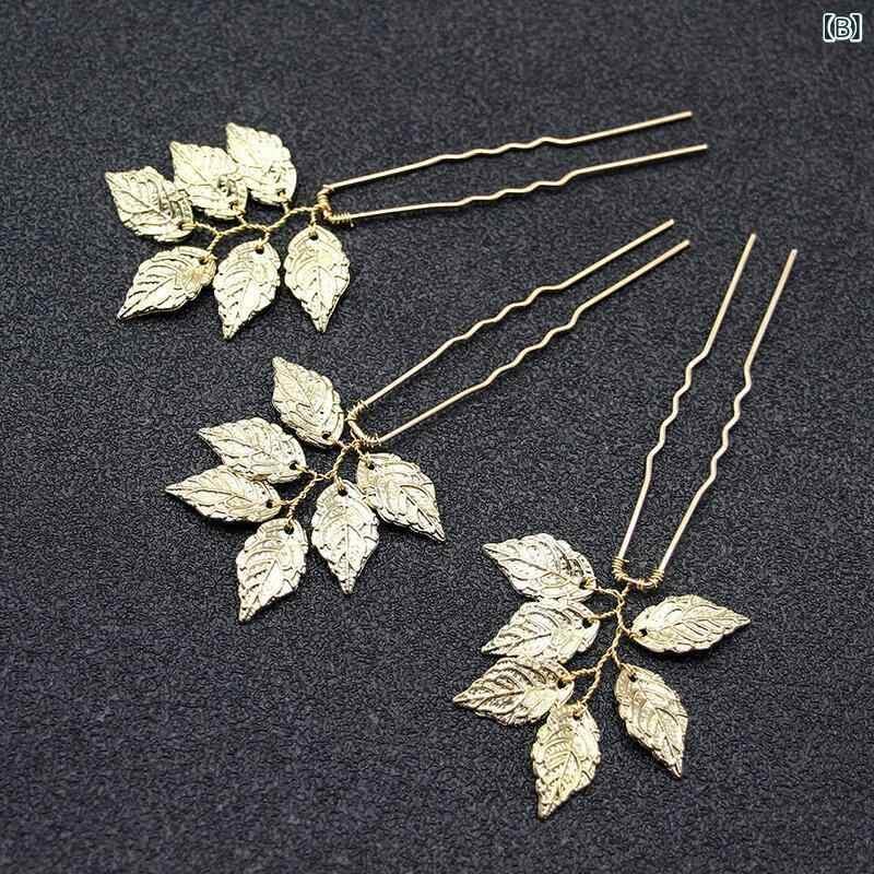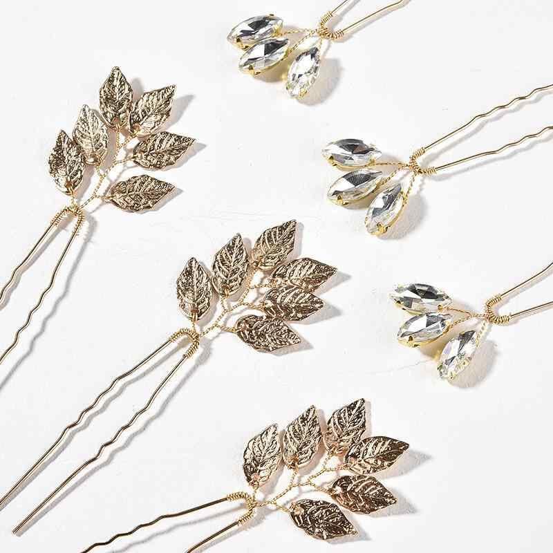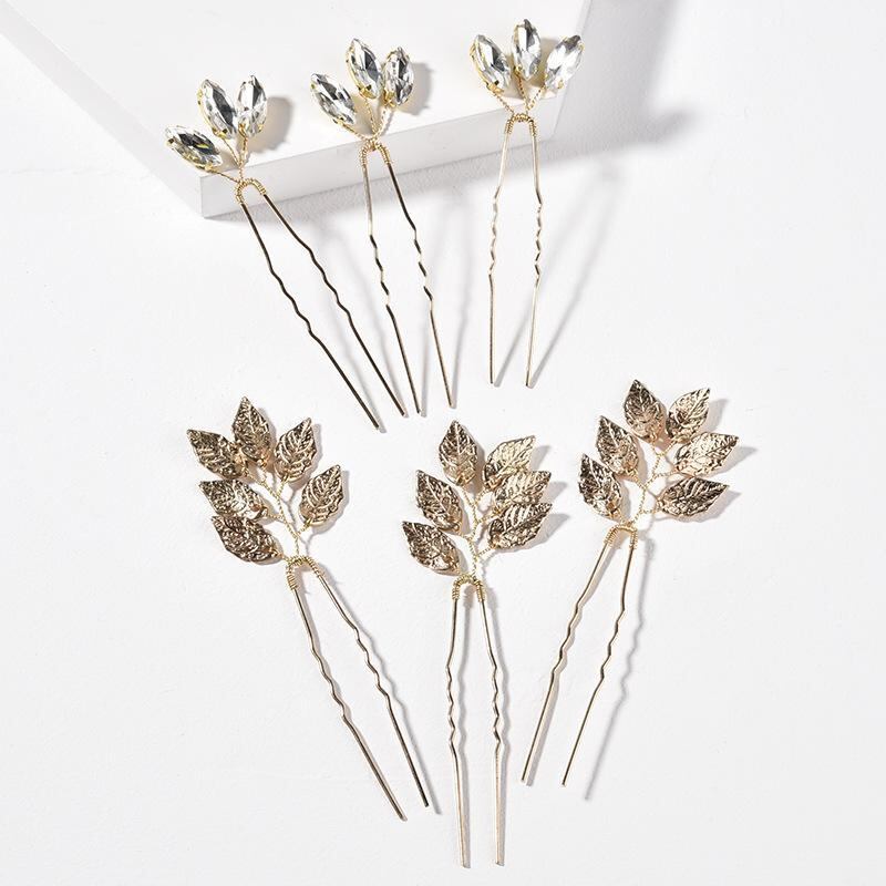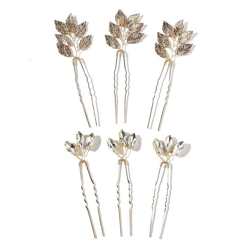 髪飾り 和風 漢服 ブライダル ウェディング 結婚式 成人式 フォーマル ヘアアクセサリー 合金 リーフモチーフ 簪 ラインストーン ゴールド シルバー 上品 シンプル 6点セット