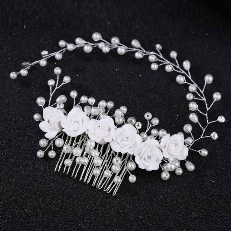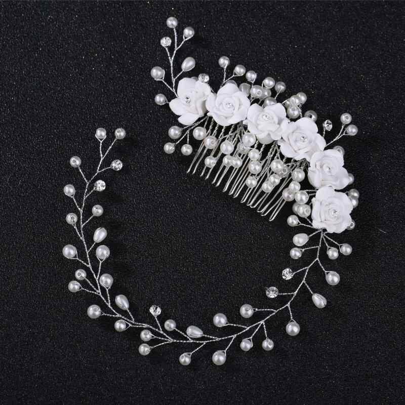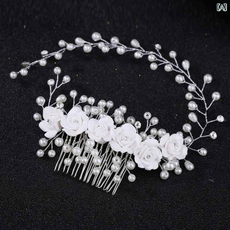 ヘッドドレス レディース ブライダル パール 花 ハンドメイド ソフトクレイ ラインストーン 韓国風 ウェディング 結婚式 前撮り ヘアアクセサリー ホワイト