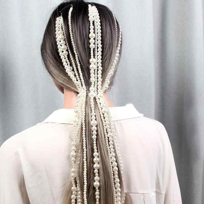 ヘッドドレス レディース 欧米風 トレンド ABSフェイクパール チェーン飾り カチューシャ 髪留め 結婚式 パーティー お呼ばれ 旅行記念 普段使い