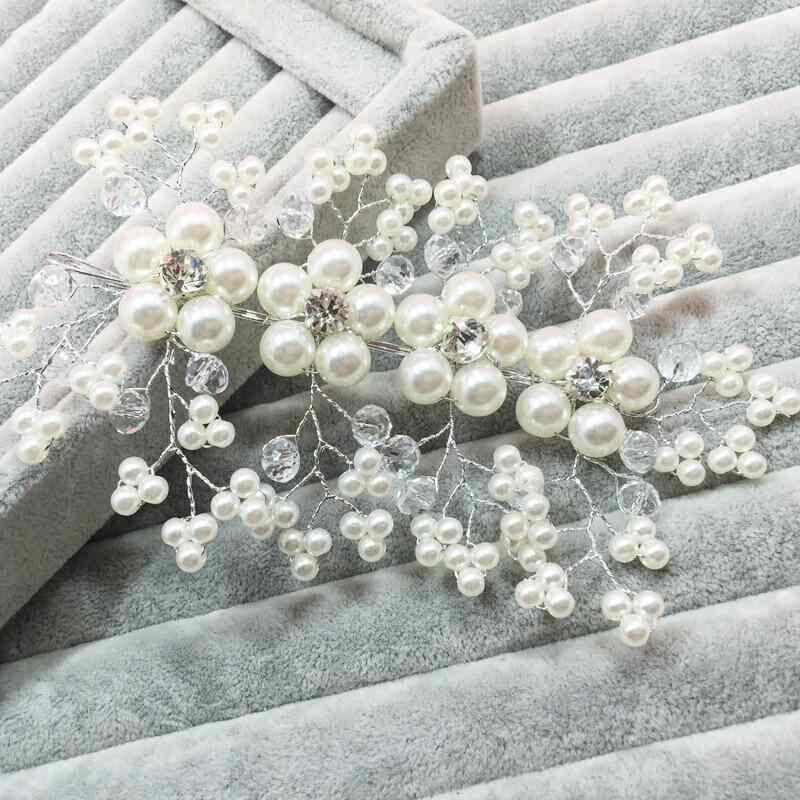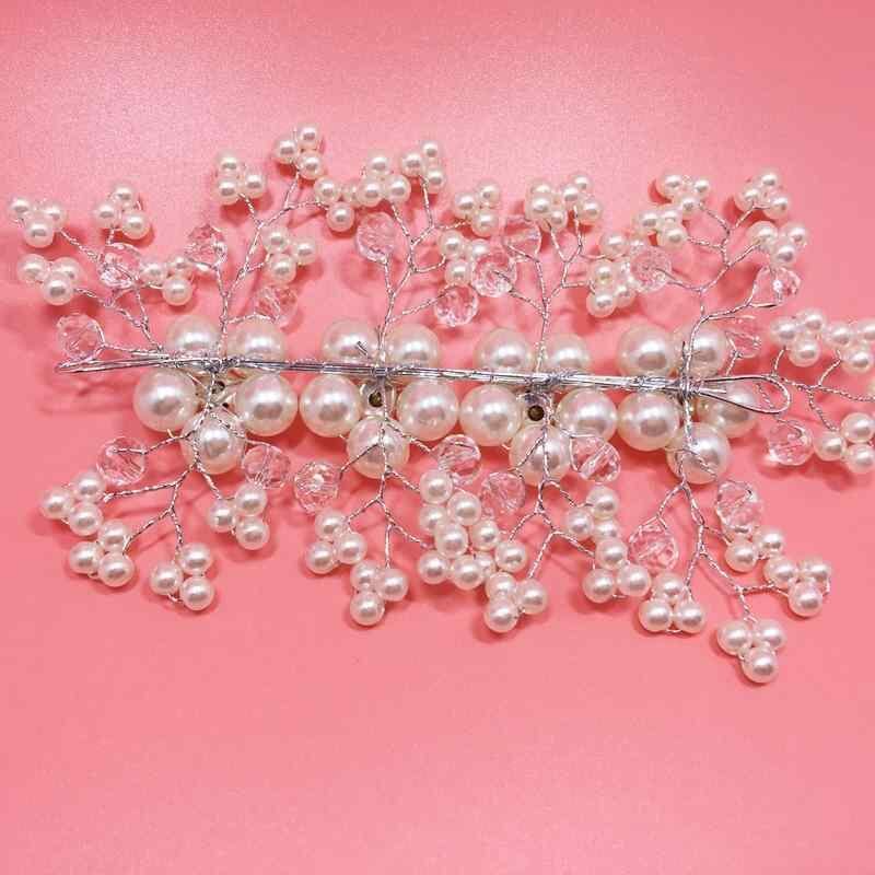 ヘッドドレス レディース ウェディング 結婚式 ブライダル 花嫁 フォトウェディング スタジオ撮影 ハンドメイド パール クリスタル 白 ホワイト 額飾り ティアラ ソフトチェーン 髪飾り ヘアコーム