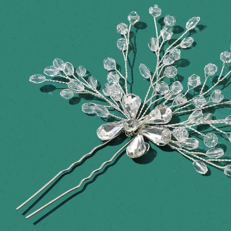 ヘアアクセサリー ブライダル ウェディング 結婚式 披露宴 パーティー 髪飾り ヘッドドレス Uピン 簪 手作り ハンドメイド クリスタル ラインストーン しずく型 ゴールド シルバー