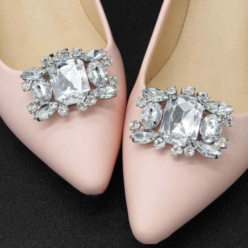 シューズクリップ レディース アクリル ラインストーン 靴飾り デコレーション 2個セット パンプス サンダル 結婚式 パーティー 普段使い 華やか シルバー ゴールド