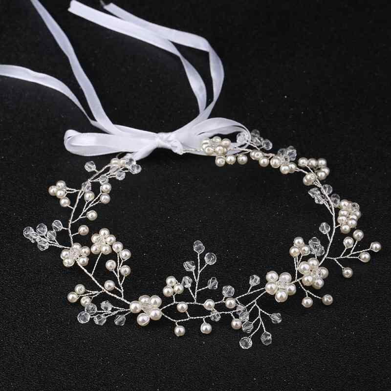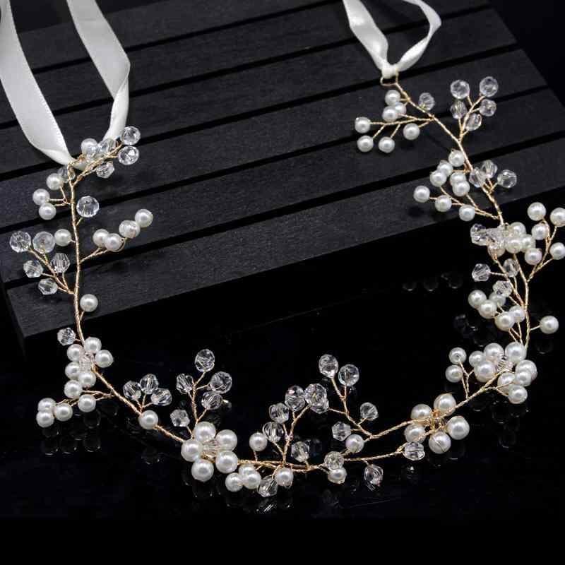 ヘアアクセサリー レディース ブライダル ウェディング 結婚式 二次会 パーティー 手作り パール フラワー クリスタル チェーン カチューシャ ヘッドドレス ゴールド ホワイト 上品 エレガント