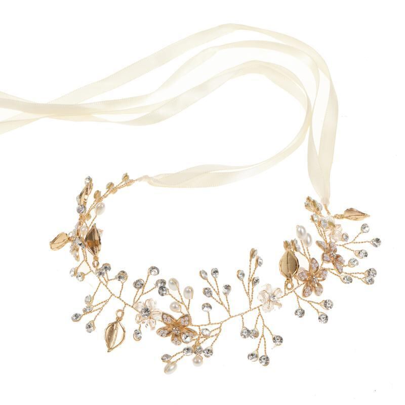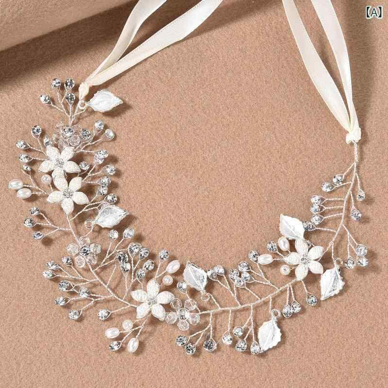 ヘッドドレス レディース ブライダル ウェディング 花嫁 ジルコニア フラワー リーフモチーフ カチューシャ 手作り ホワイト 結婚式 披露宴 前撮り 髪飾り