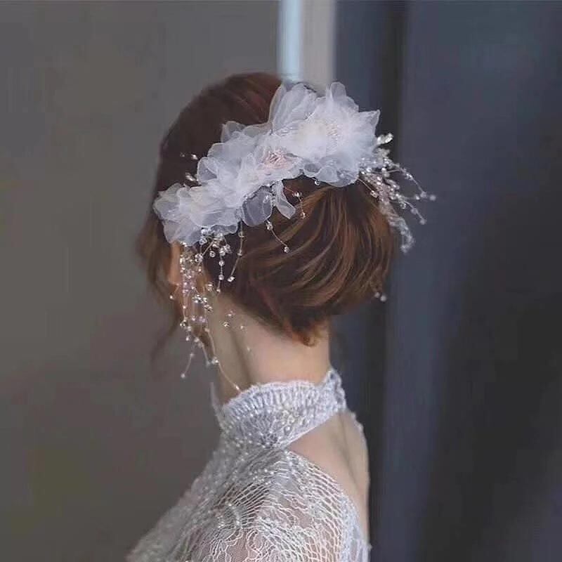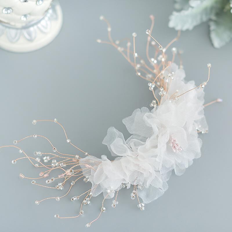 ヘッドドレス レディース ウェディング ブライダル 花嫁 森ガール風 エレガント 妖精風 パール ヘアクリップ サイドクリップ イヤリング 3点セット 結婚式 前撮り フォトウェディング 写真撮影用 華やか 髪飾り アクセサリー