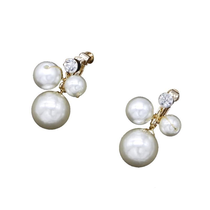 イヤリング レディース 子供用 ノンホール ハンドメイド パール パール 高輝度 かわいい 上品 エレガント 花嫁 結婚式 フォーマル お出かけ ホワイト クリップ式 耳飾り