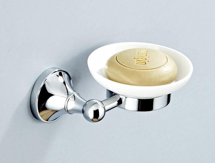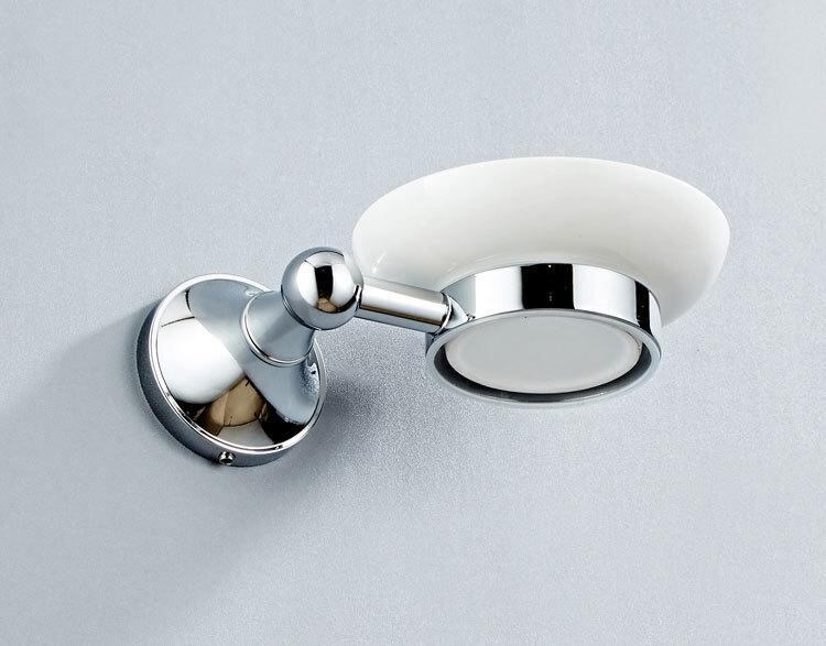 ソープディッシュ 壁掛け式 石鹸置き バスルーム 浴室 洗面所用 銅製 陶器 電気メッキ加工 クロムメッキ シングルタイプ 円形 楕円形 モダン シンプル ブライトシルバー 耐荷重20kg