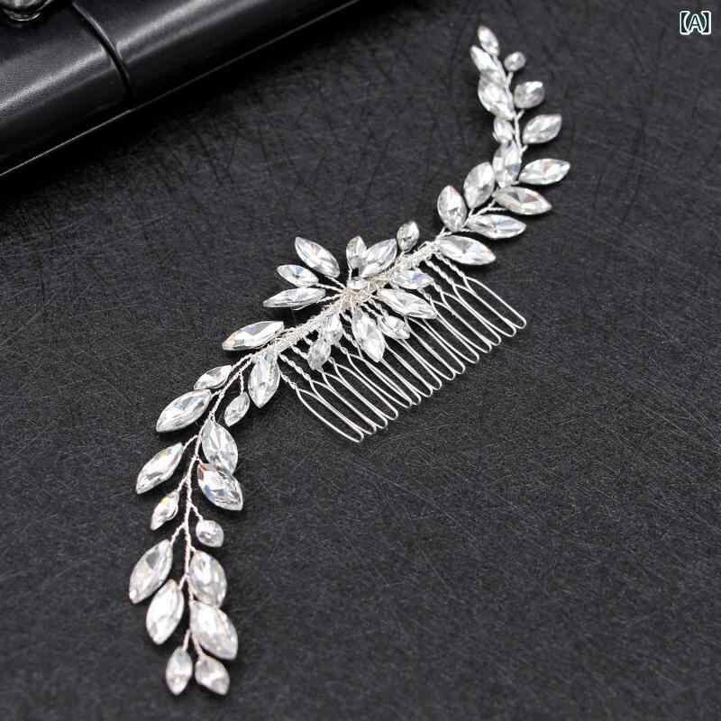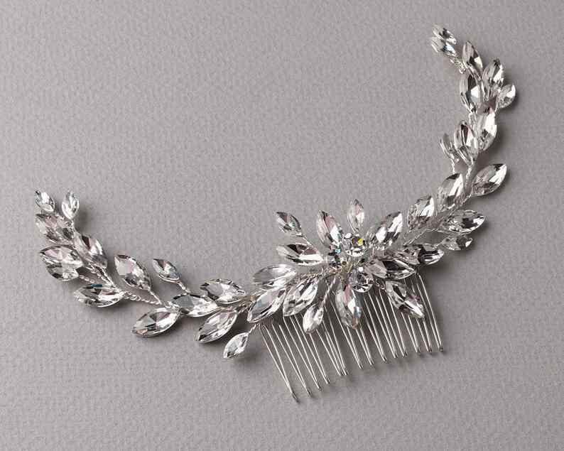 ヘアコーム レディース ブライダル ウェディング 結婚式 ハンドメイド マーキスカット ガラス ジルコニア ラインストーン 髪飾り ヘッドドレス 上品 華やか シルバー ゴールド パーティー 二次会 披露宴