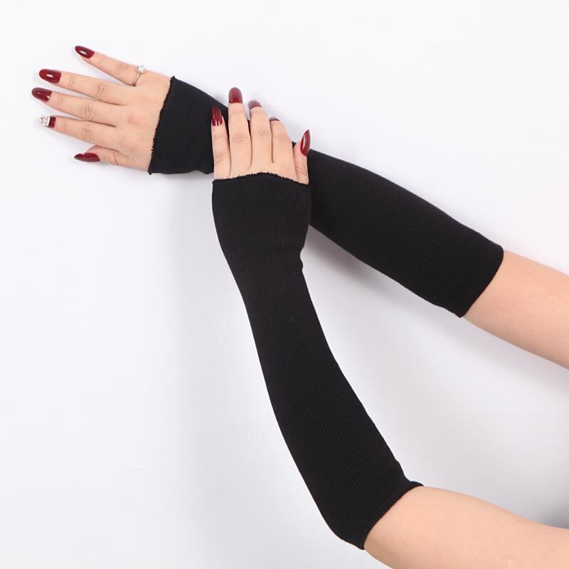 アームウォーマー 男女兼用 秋冬 ニット 綿 保温 暖かい 高伸縮性 ロング丈 ミドル丈 手袋 アームカバー 半指 指なし 肘カバー カジュアル おしゃれ 黒