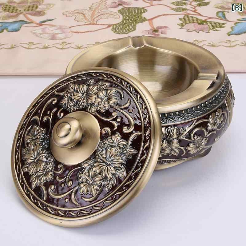 灰皿 蓋付き リビング 家庭用 大型 亜鉛合金製 レトロ アンティーク調 かわいい おしゃれ 置物 オブジェ 多機能 ヨーロピアンデザイン 豪華なインテリアにも サンフラワー アンティークカラー