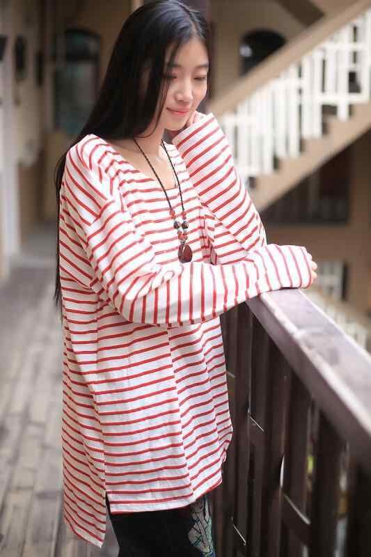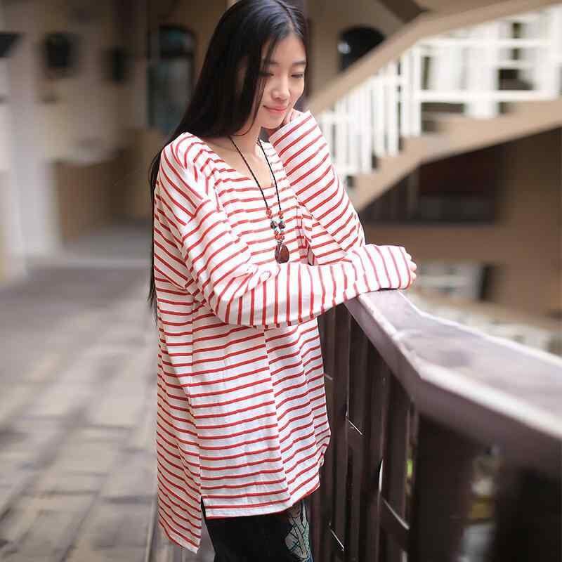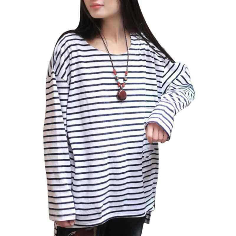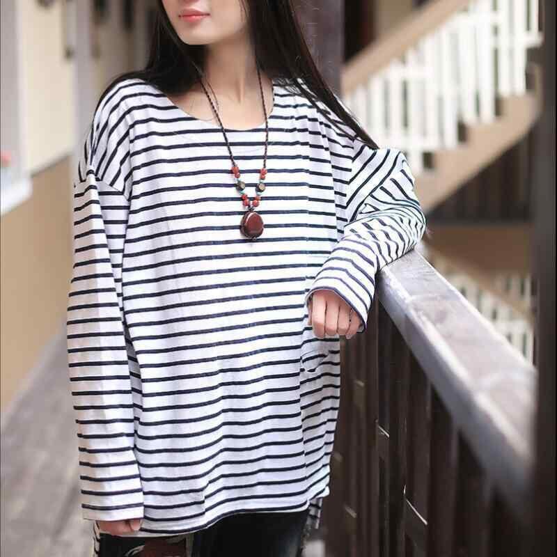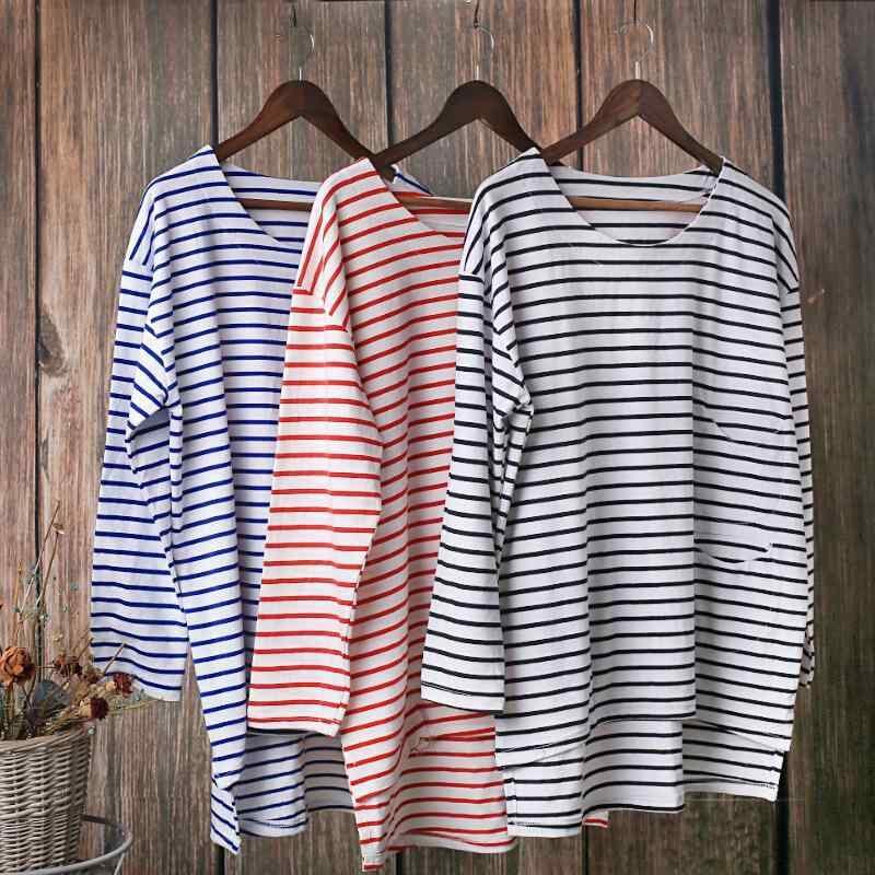 Tシャツ レディース 秋冬 カジュアル 通勤 オフィス 普段使い きれいめ ラウンドネック ストライプ 長袖 ミドル丈 綿 ゆったり 切り替え