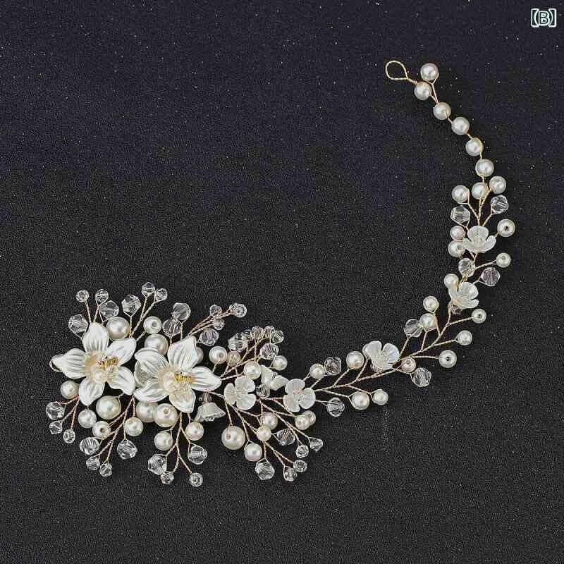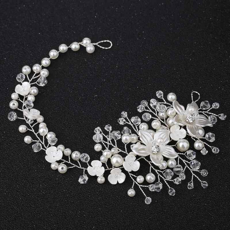 ヘアアクセサリー ブライダル 花嫁 ウェディング 結婚式 披露宴 パーティー お呼ばれ ハンドメイド 韓流 花モチーフ クリスタル パール ツイストパール ヘアバンド ヘッドドレス 髪飾り ソフトチェーン ホワイト ゴールド シルバー エレガント 上品