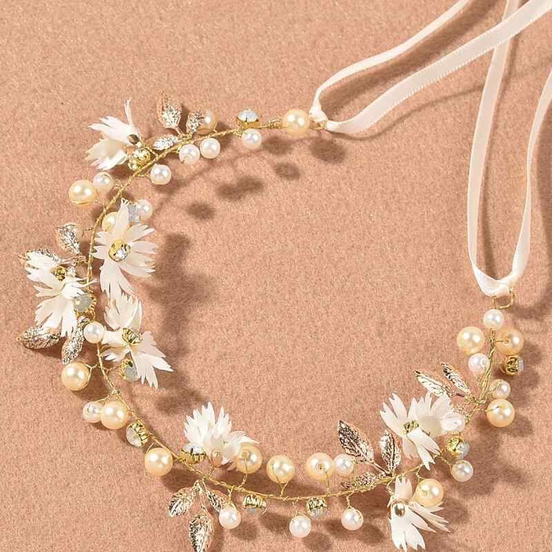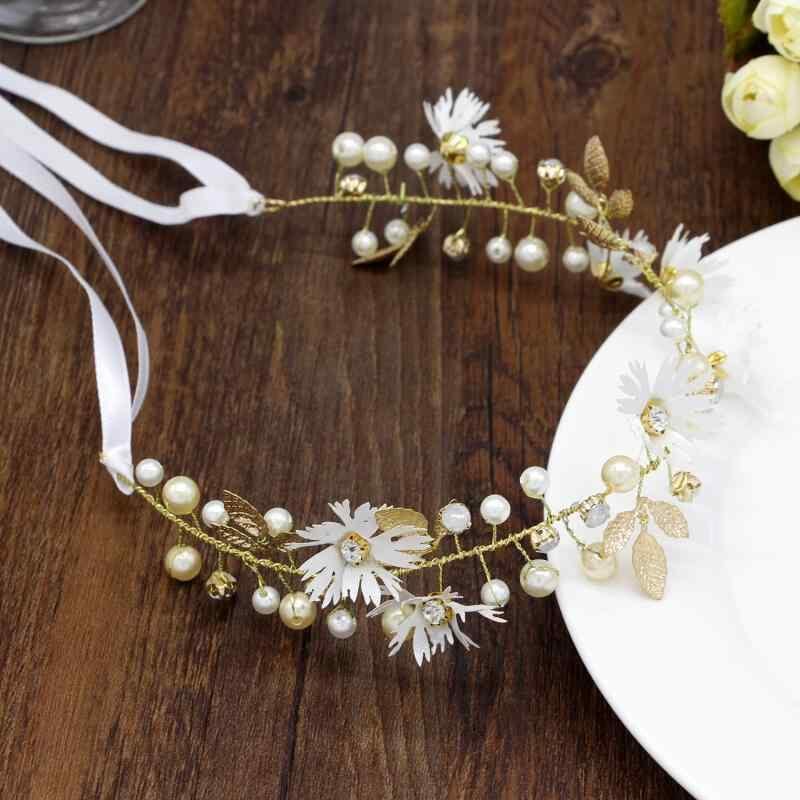 ヘアアクセサリー 韓国風 シンプル 小花 デイジー クリスタル ツイストビーズ ハンドメイド 布製 白い花 カチューシャ ヘアバンド ブライダル ウェディング 花嫁 結婚式 披露宴 髪飾り