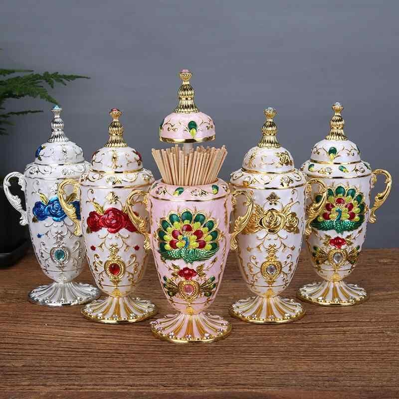 楊枝入れ 自動 ワンプッシュ 卓上 おしゃれ ヨーロピアン アンティーク レトロ リビング ダイニング インテリア 置き物 ユニーク 孔雀柄 ローズ柄 花柄