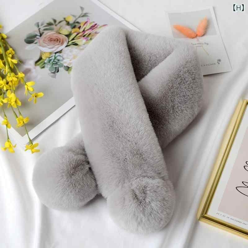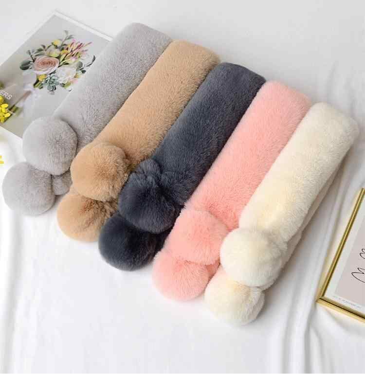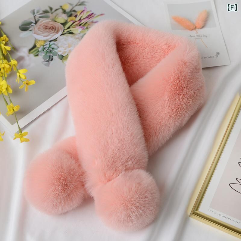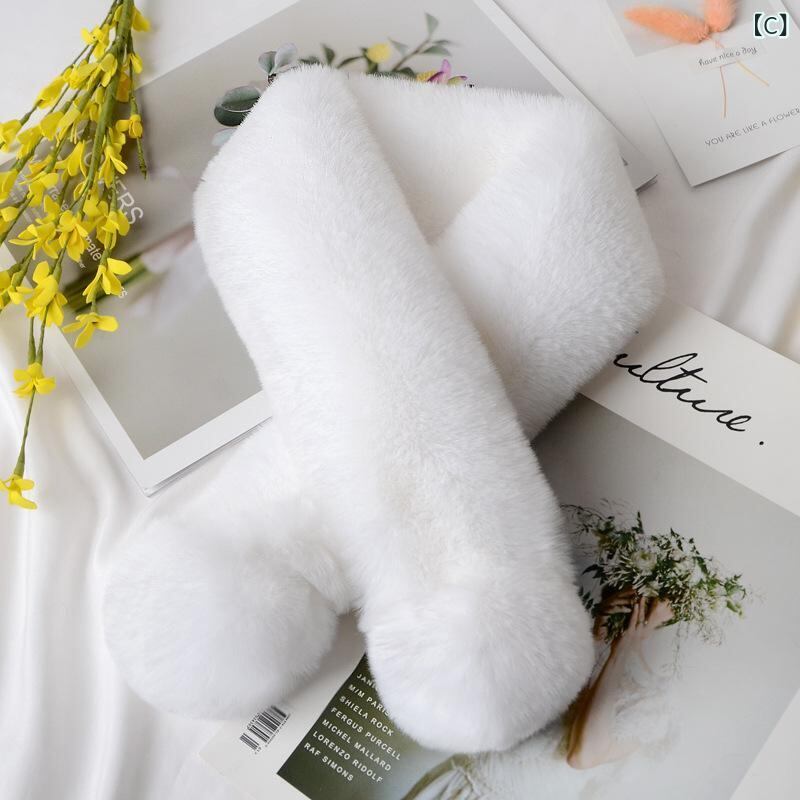 マフラー レディース キッズ フェイクファー もこもこ ふわふわ ラビットファー調 ダブルポンポン 保温 防寒 スヌード ネックウォーマー 秋冬 ブラック ピンク グレー