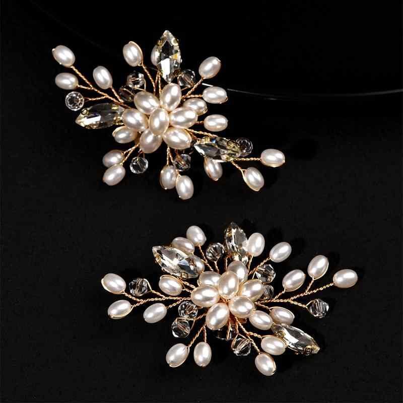 シューズアクセサリー 花嫁 ブライダル ウェディング パンプス用 パール ラインストーン クリスタル 手作り ハンドメイド 上品な靴クリップ 靴飾り ホワイト ゴールド