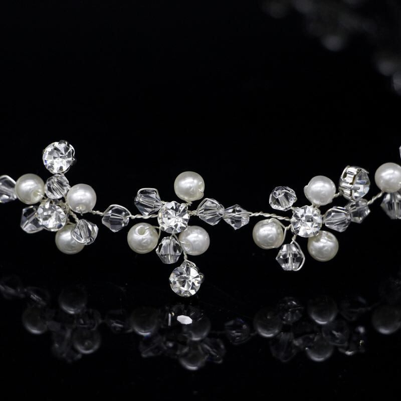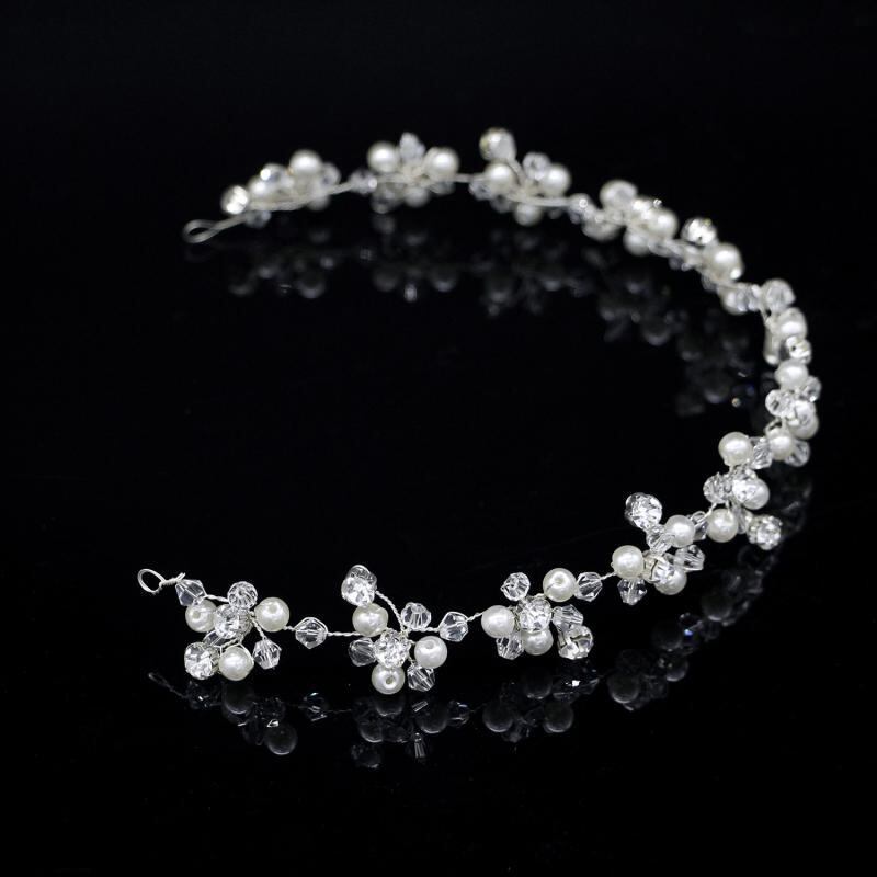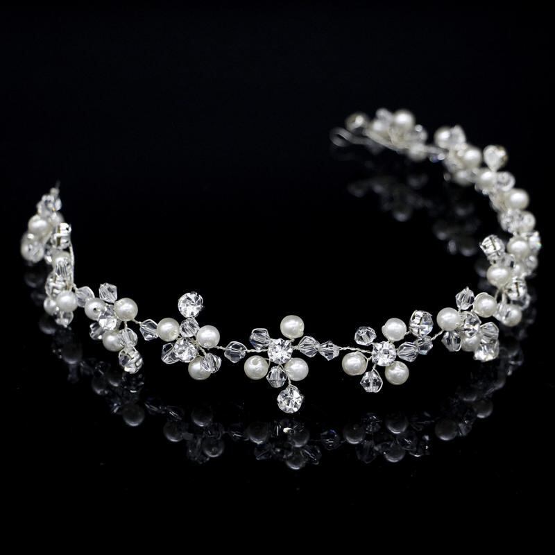 ヘッドドレス レディース 女性用 ブライダル 花嫁 結婚式 ウェディング フォーマル ハンドメイド パール クリスタル フラワー ヘアバンド シルバー 韓国風 春夏