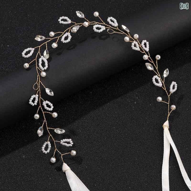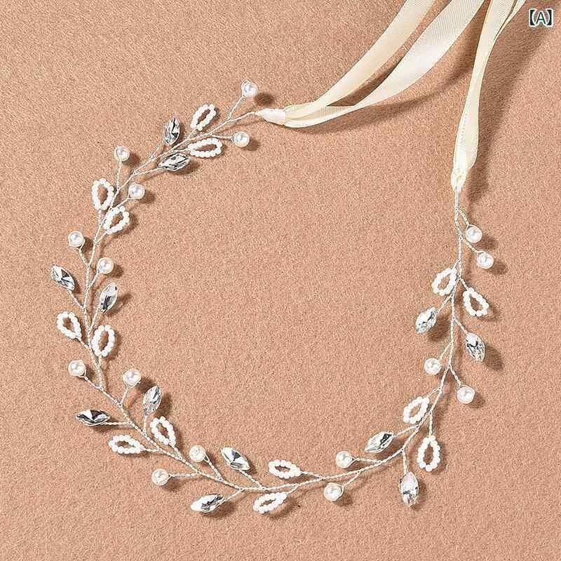 ヘアアクセサリー レディース 花嫁 ウェディング パーティー 欧米風 パール クリスタル ツイスト フラワー ソフトチェーン ヘアバンド 髪飾り 高級感