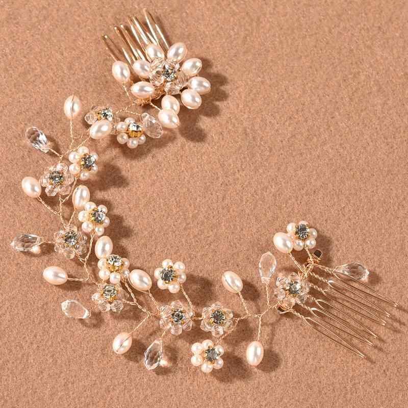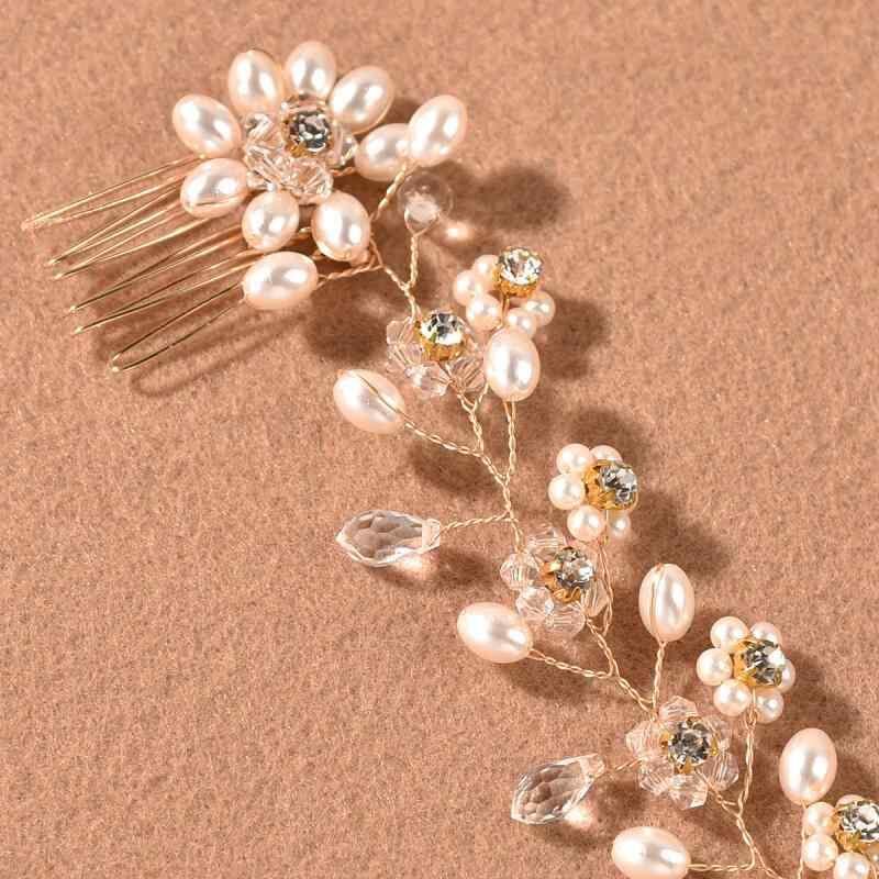 ヘアアクセサリー レディース ハンドメイド パール クリスタル ビーズ ツイスト ヘアコーム ブライダル 新婦 髪飾り 結婚式 ウェディング パーティー 二次会 エレガント 上品