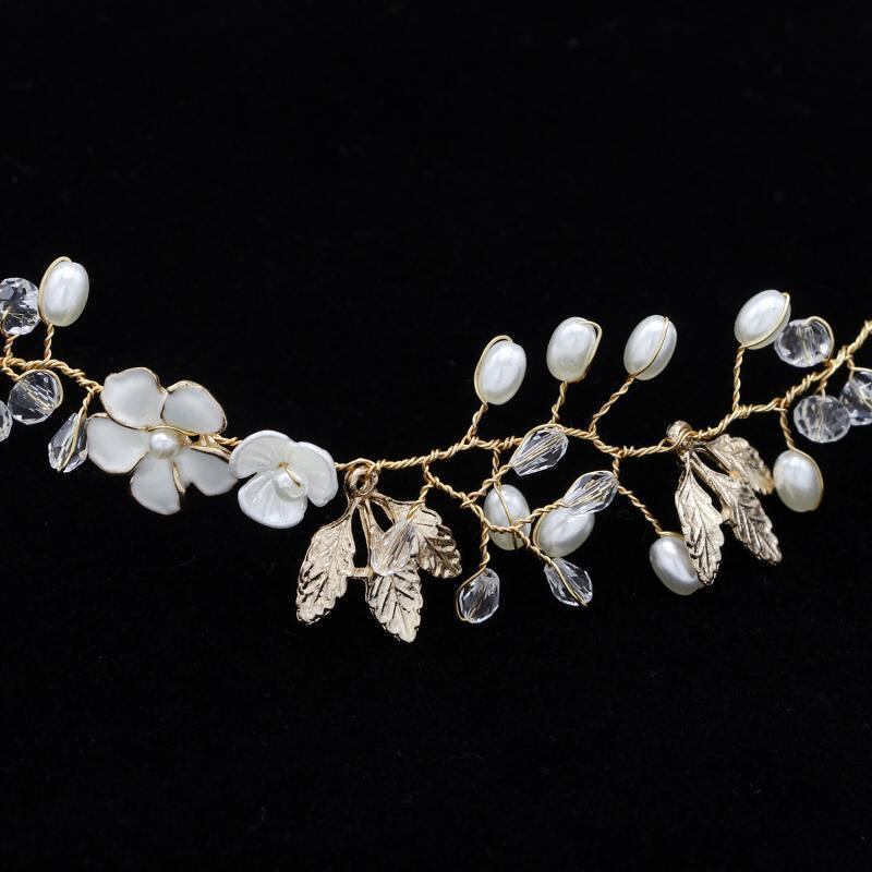 ヘッドドレス レディース 結婚式 ブライダル ウェディング 花嫁 披露宴 パーティー 高級感 韓国風 合金 リーフ クリスタル 貝殻 シェル パール パール フラワー 花 ヘアアクセサリー ヘアバンド カチューシャ 髪飾り ゴールド シルバー