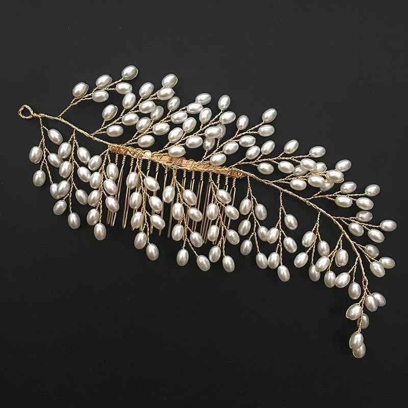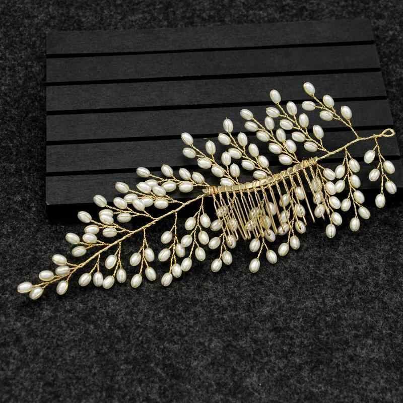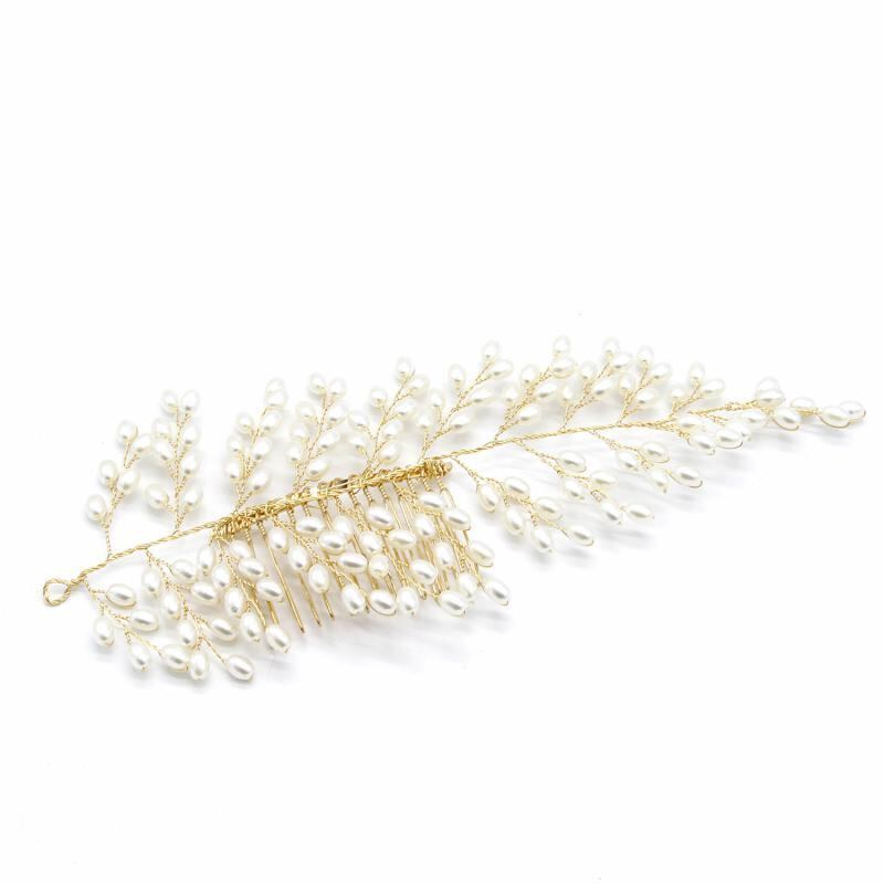 ヘアコーム レディース ブライダル パール リーフモチーフ ハンドメイド ゴールド 結婚式 ウェディング ヘッドドレス 二次会 パーティー ナチュラル シンプル