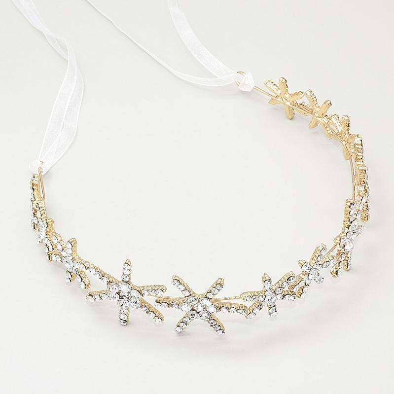ヘッドドレス レディース 花嫁 結婚式 ブライダル ウェディング 韓国風 六芒星 スター 輝く シャイニー ソフトチェーン カチューシャ ヘアアクセサリー 髪飾り 合金 ゴールド シルバー